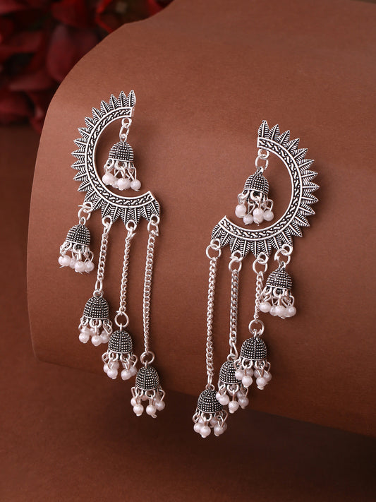 Silver toned contemporary jhumka earrings Style Note: Earrings from NVR will add a swanky twist to...