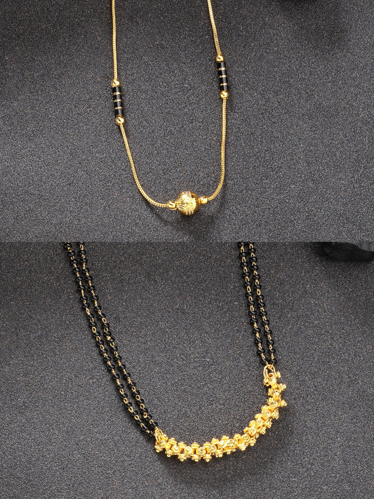 Set of 2 Black Gold-Plated & Beaded Mangalsutra Style Note: The NVR Women Set of...