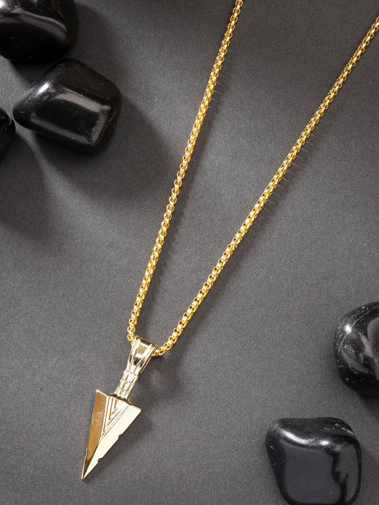Gold-Plated Arrow-Shaped Pendant With Chain Style Note: The NVR Men Gold-Plated Arrow-Shaped Pendant with Chain...