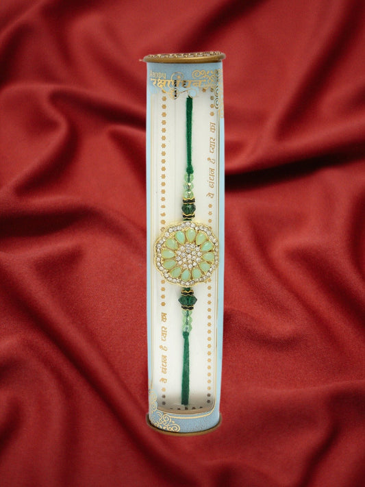 Men Green Stone-Studded Rakhi With Roli Chawal Style Note: Celebrate Raksha Bandhan with sophistication using...