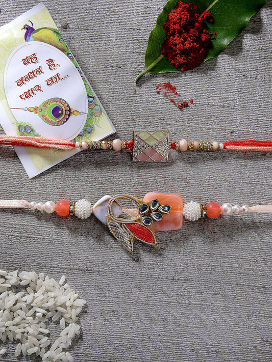 Men Set of 2 Multicolor Stone-Studded Rakhi With Roli Chawal Style Note: Celebrate Raksha Bandhan...