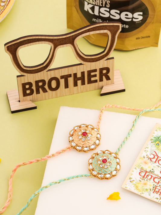 Men Set of 2 Multicolor Stone-Studded Rakhi With Roli Chawal & Chocolate Style Note: Celebrate...