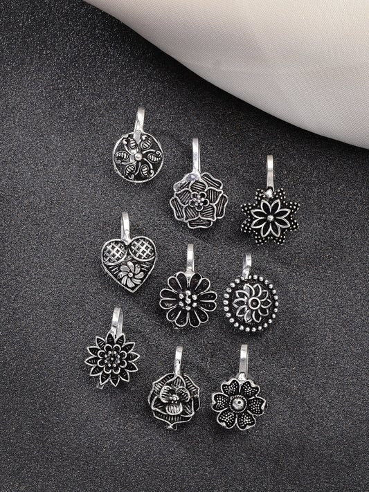 Set of 9 Silver-Plated German Silver Nose Pins "Style Note: The NVR Women Set of...