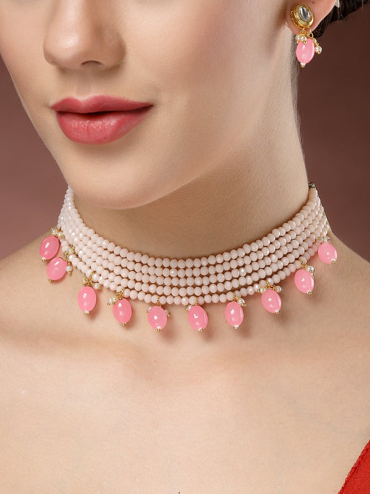 Pink Artificial Beads Layered Necklace with Drop Earrings Style Note: The NVR Women Pink Artificial...