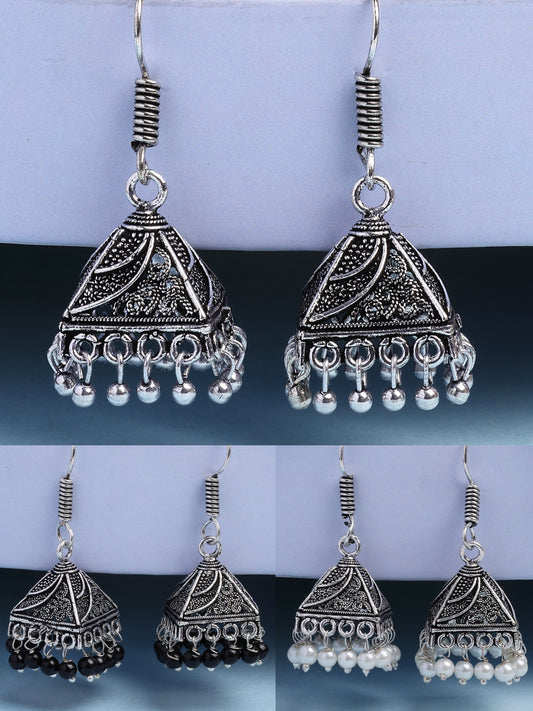 Style Note: NVR Oxidized Silver Plated Black Artificial Beads Jhumka Earrings for Women combine a...