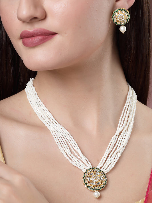 White & Gold-Plated Kundan & Pearl Jewellery Set Style Note: Evoke timeless sophistication with the...