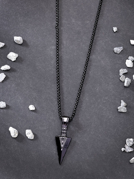 Black Rhodium-Plated Arrow-Shaped Pendant With Chain Style Note: The NVR Men Black Rhodium-Plated Arrow-Shaped Pendant...