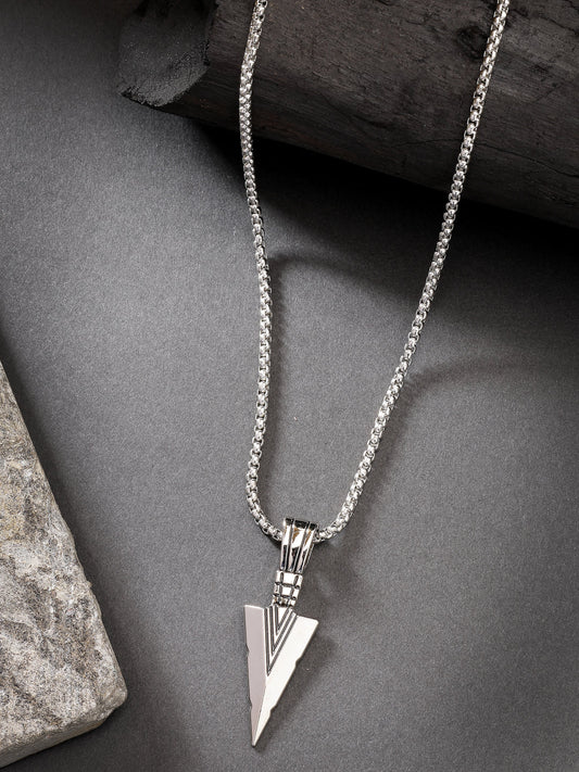Silver-Plated Arrow-Shaped Pendant With Chain Style Note: The NVR Men Silver-Plated Arrow-Shaped Pendant with Chain...