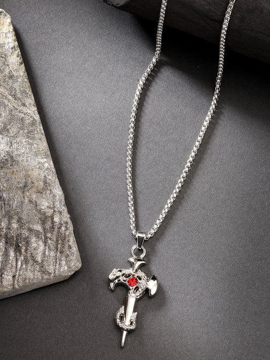 Silver-Plated Artificial Stone Stainless Steel Pendant with Chain Style Note: The NVR Men Silver-Plated Artificial...