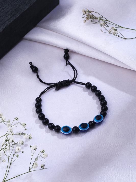 black evil eye beaded adjustable bracelet Style Note: Bracelet from NVR will add a swanky twist...