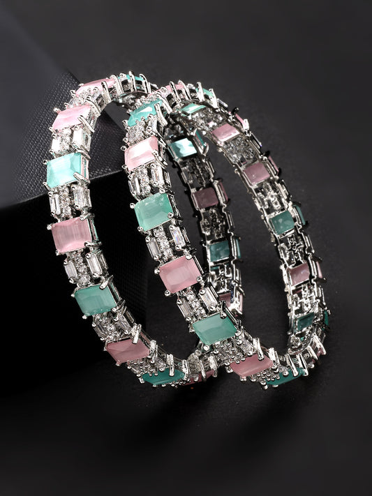 Set of 2 Silver-Plated CZ Stone-Studded Handcrafted Bangles Style Note: The NVR Women Set of...