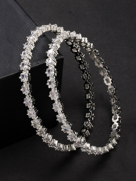 Style Note: The NVR Women's Set of 2 Silver-Plated American Diamond-Studded Bangles offers a sophisticated...