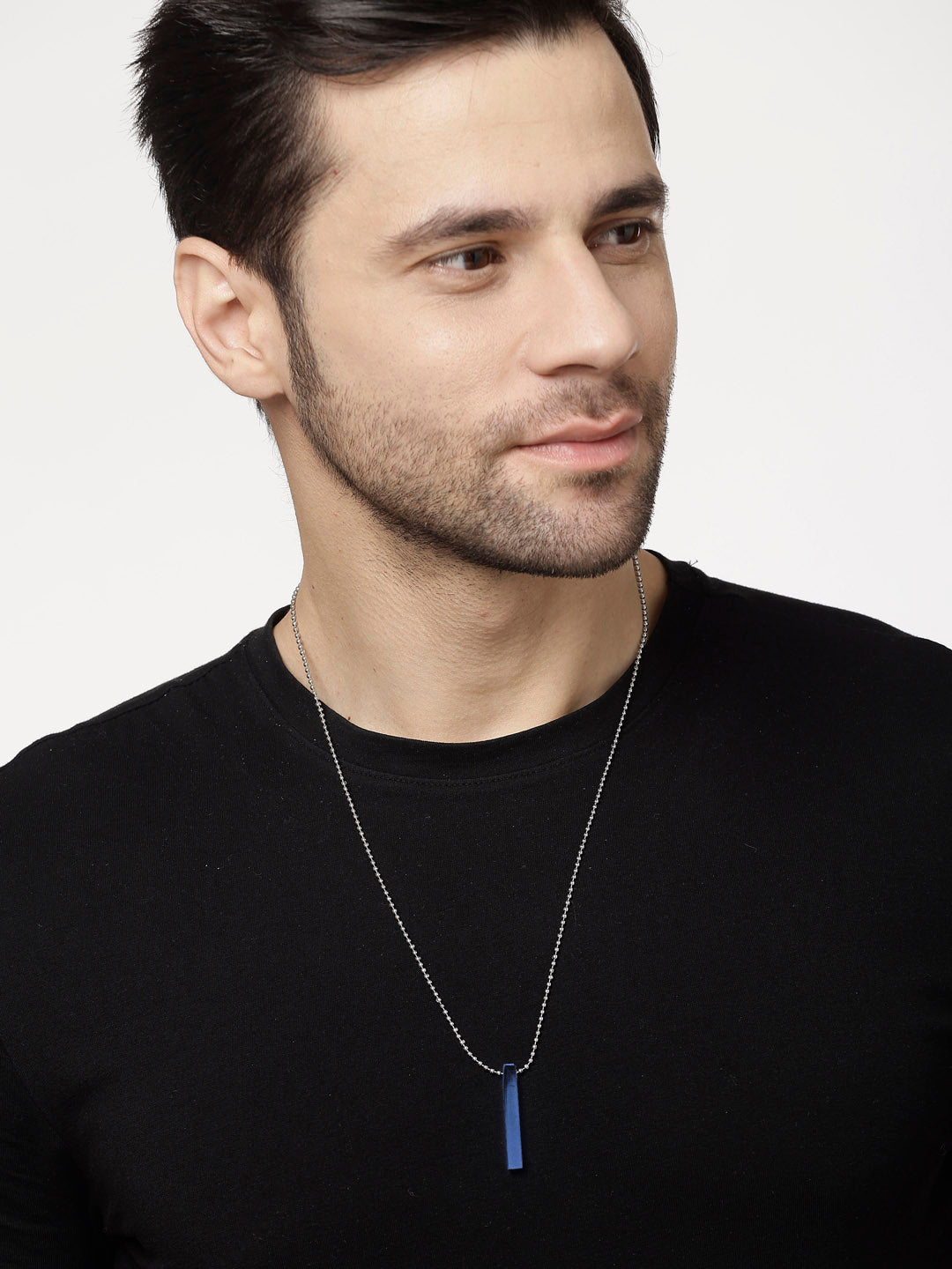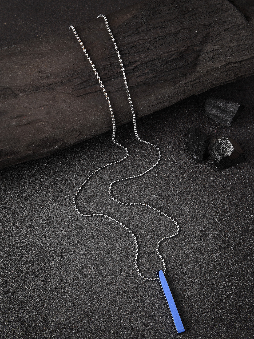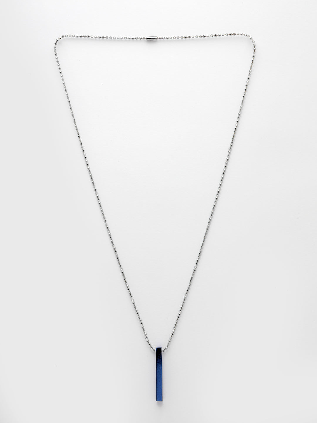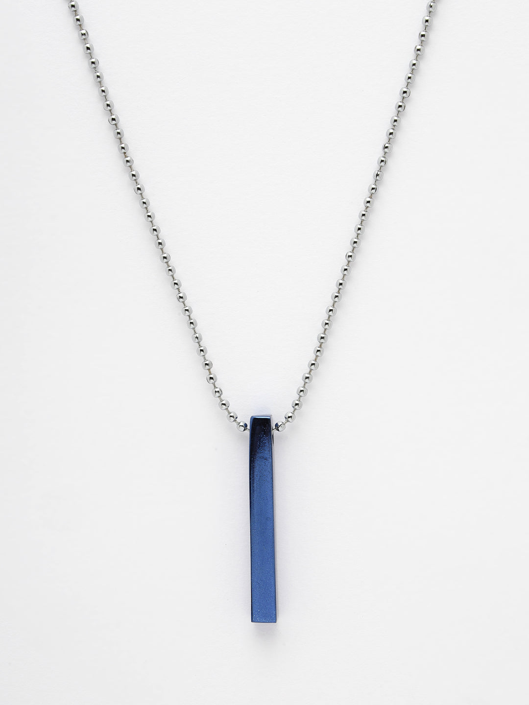 Blue tone bar charm pendant, comes with a chain, secured with a lobster closure.