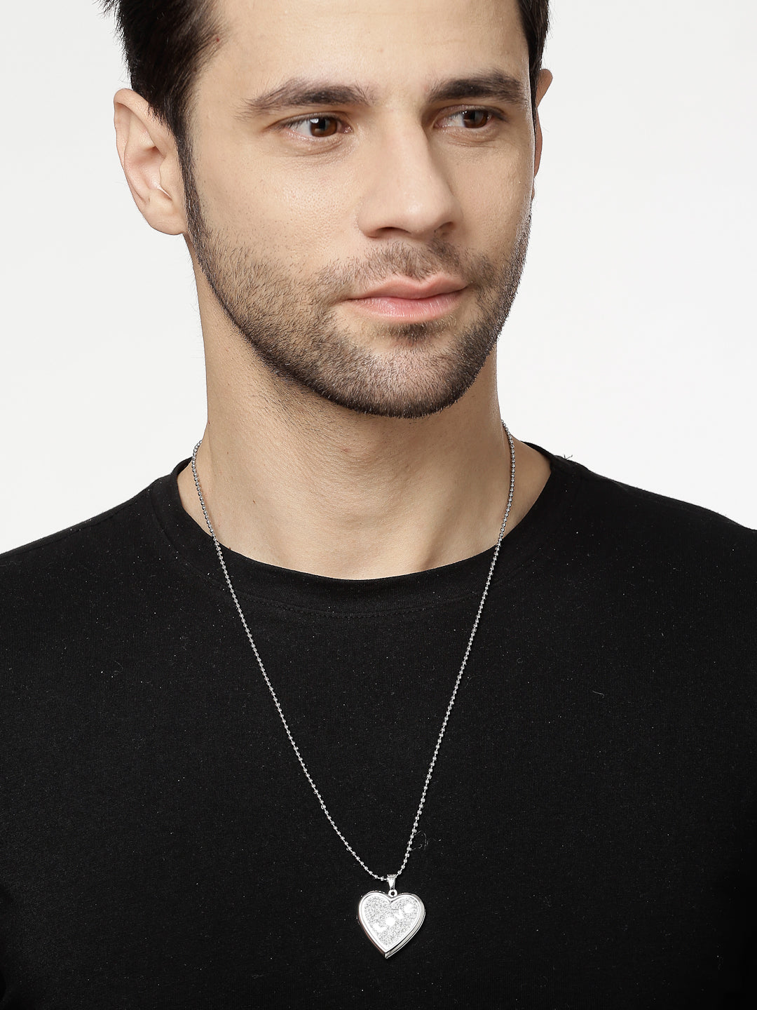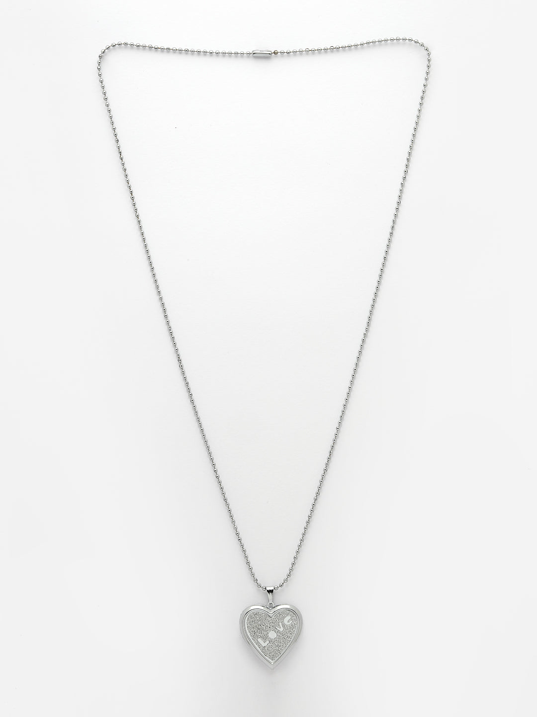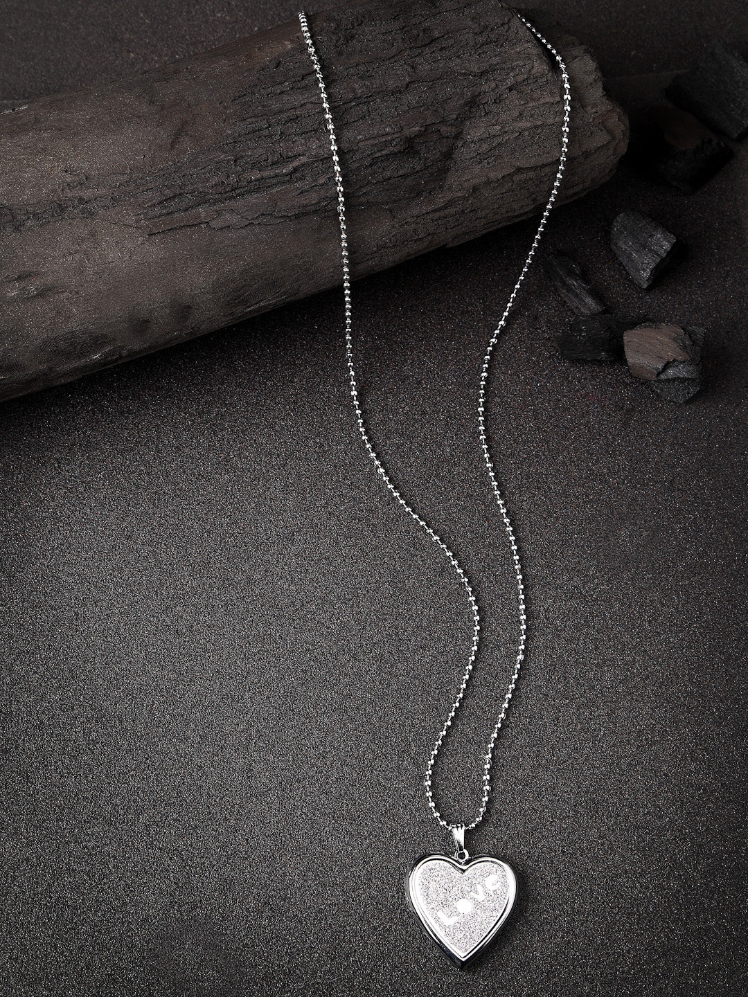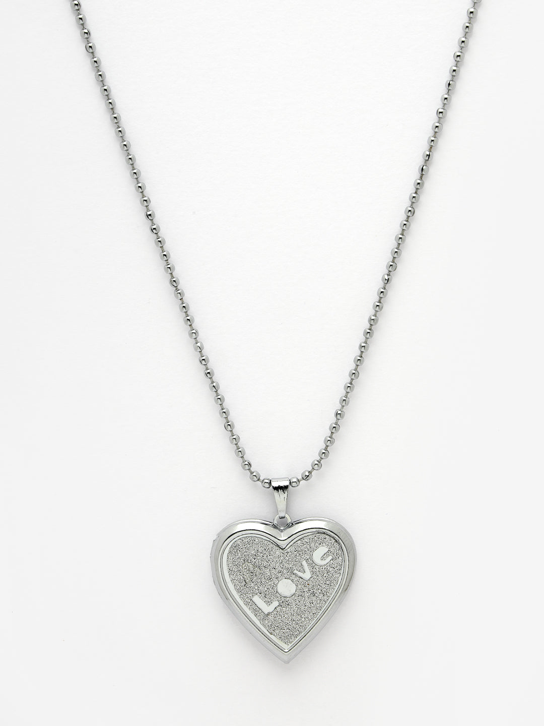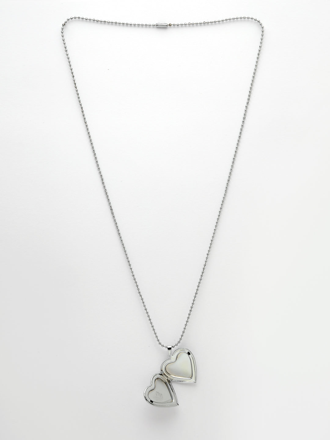 Silver tone heart shaped pendant with photo frame, comes with a chain, secured with a lobster closure.