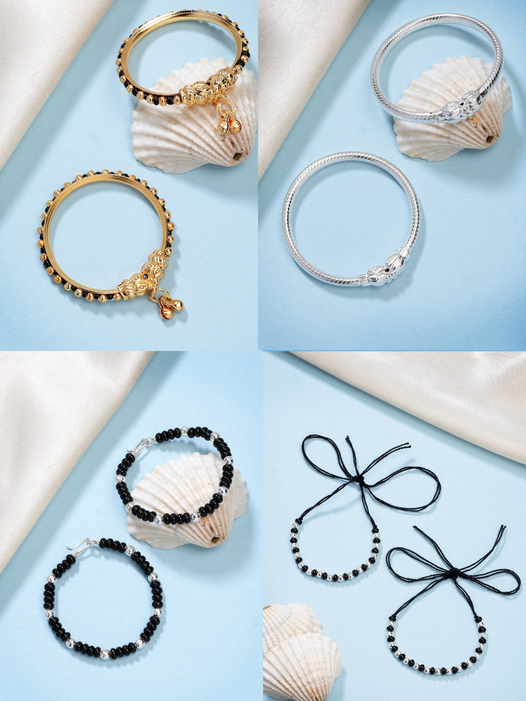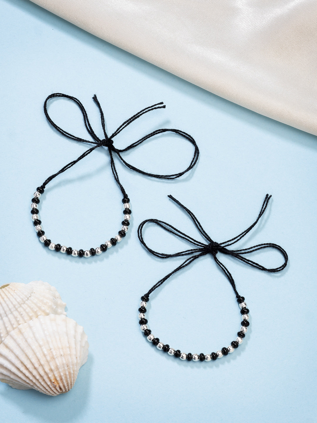 NVR Kids Pair of 4 Rhodium-Plated Artificial Beads Nazariya Kada Bracelet
