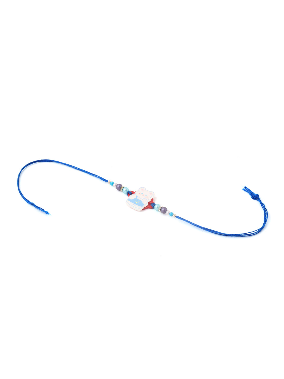 NVR Kids Teddy Blue Artificial Beads Thread Rakhi with Roli Chawal Chandan & Mishri