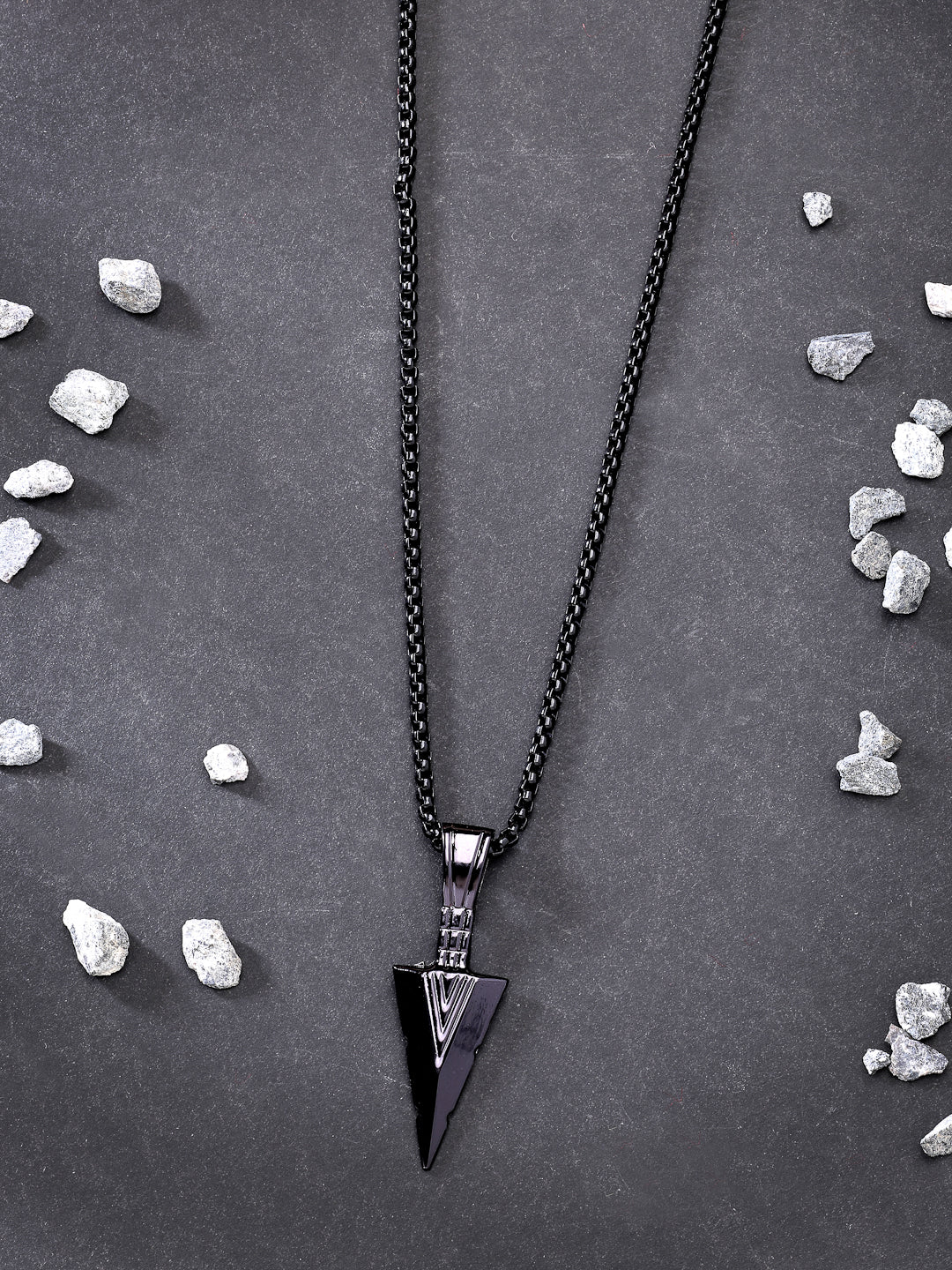 NVR Men Black Rhodium-Plated Arrow-Shaped Pendant With Chain