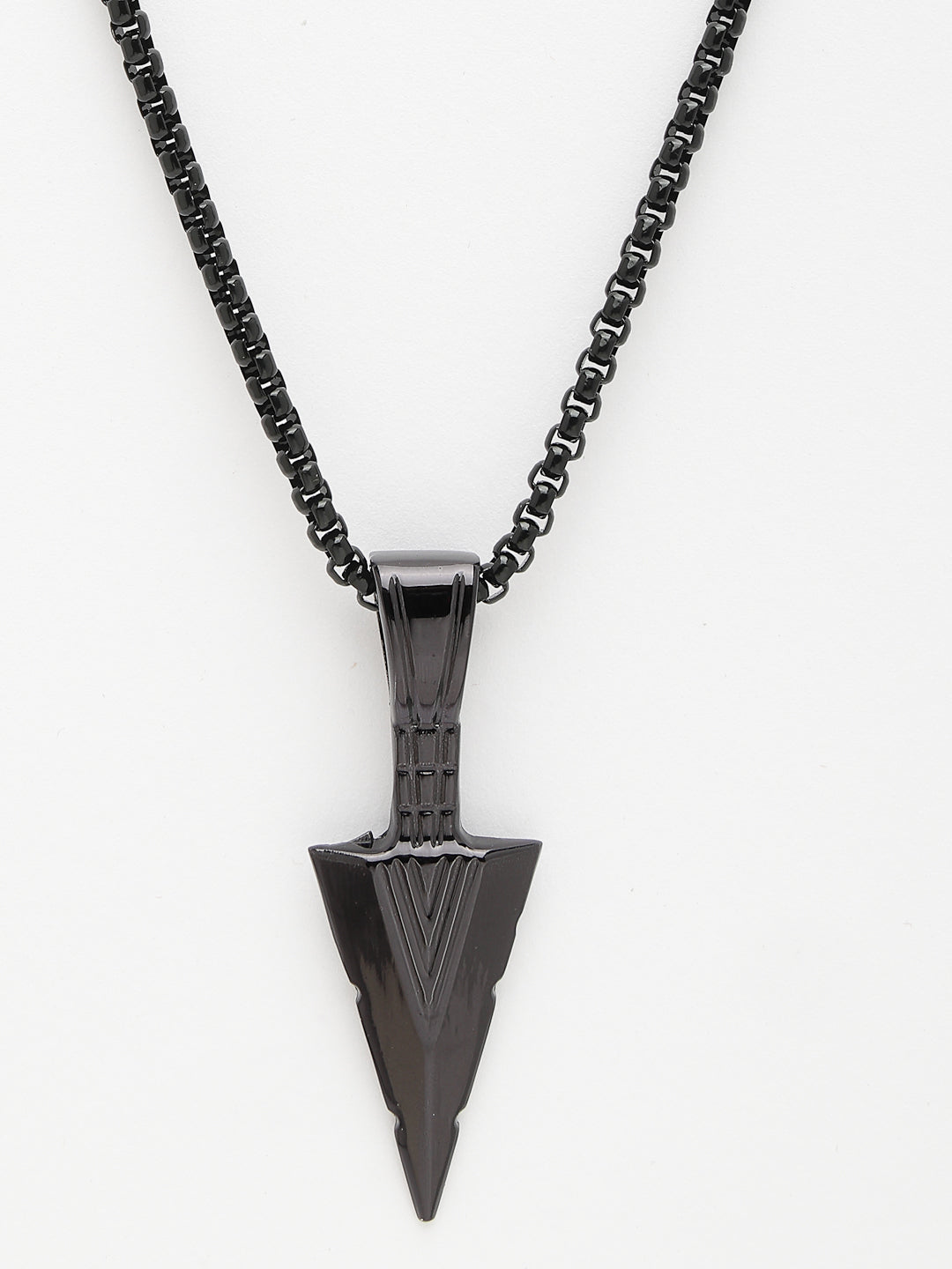 Black Rhodium-Plated Arrow-Shaped Pendant With Chain