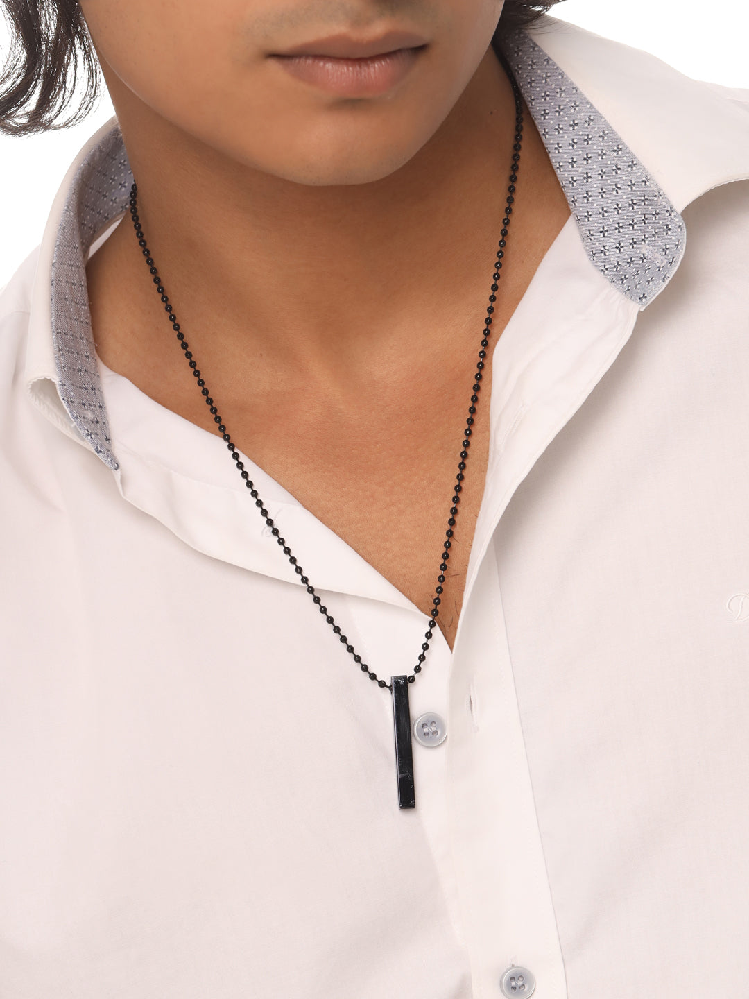 Style Note: Elevate your accessory collection with the NVR Metal Pendant, designed for men and boys who appreciate modern, minimalist style. This elegant necklace features a sleek vertical bar pendant in a timeless rhodium finish, paired with a durable metal chain. Its simple yet sophisticated design makes it a versatile piece, perfect for pairing with casual outfits or enhancing formal attire. Crafted from high-quality metal, this necklace offers excellent durability and resistance to wear and tarnish, ensuring it maintains its shine over time. The lightweight construction and smooth finish provide all-day comfort, making it suitable for everyday wear or special occasions. Whether you're looking to upgrade your personal style or searching for a thoughtful gift, the NVR Metal Bar Pendant is an ideal choice for birthdays, anniversaries, or any celebration. Its secure lobster clasp ensures hassle-free wear and a reliable fit, while the chain length is perfect for most men and boys, offering a comfortable and flattering fit. Embrace the elegance of minimalist fashion with this stylish black pendant necklace from NVR.