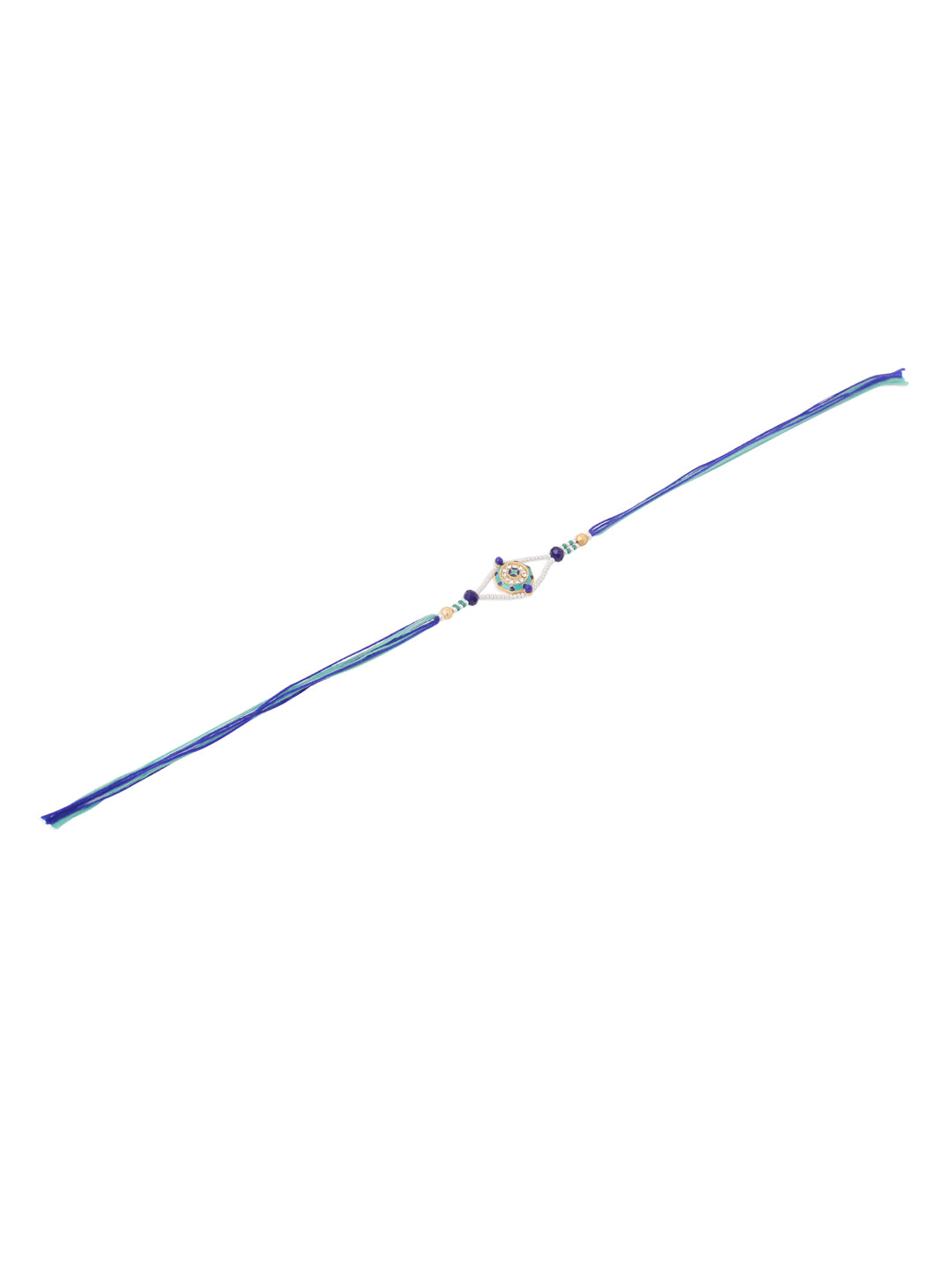NVR Men Blue Artificial Stones & Beads Floral Design Thread Rakhi Combo