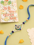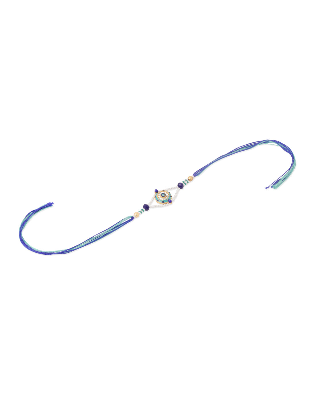 NVR Men Blue Artificial Stones & Beads Floral Design Thread Rakhi with Roli Chawal Chandan & Mishri