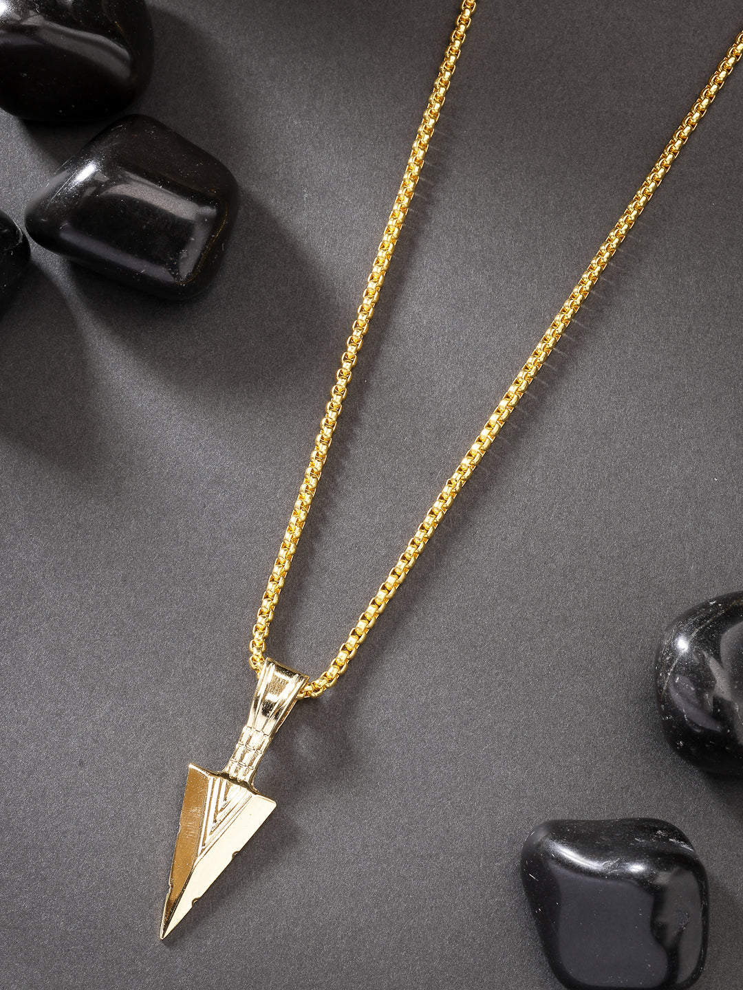 NVR Men Gold-Plated Arrow-Shaped Pendant With Chain