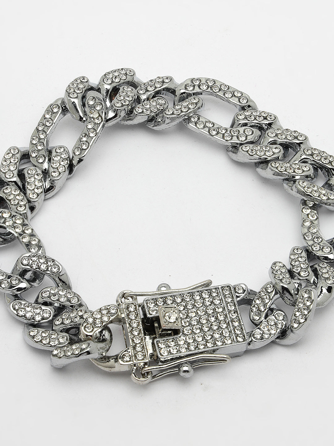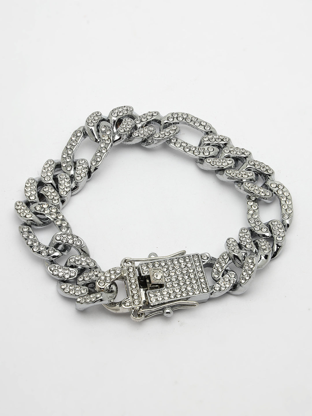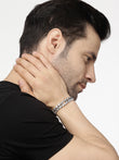 NVR Men Silver-Plated Stainless Steel American Diamond Studded Link Bracelet