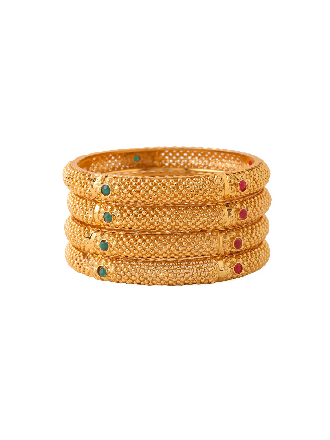 NVR Women's Set Of 4 Gold-Plated Traditional Bangles