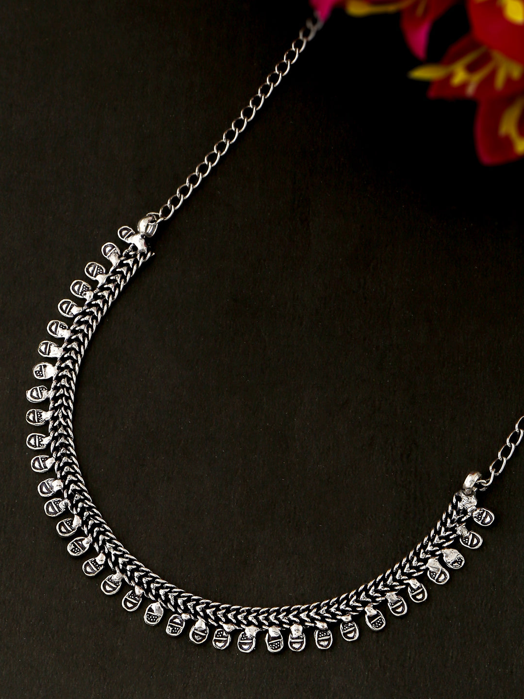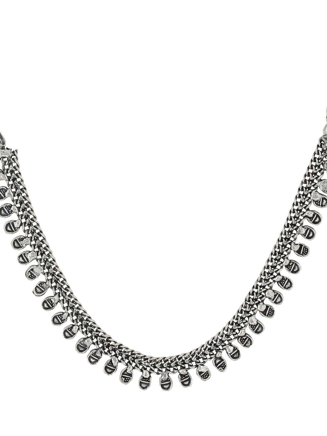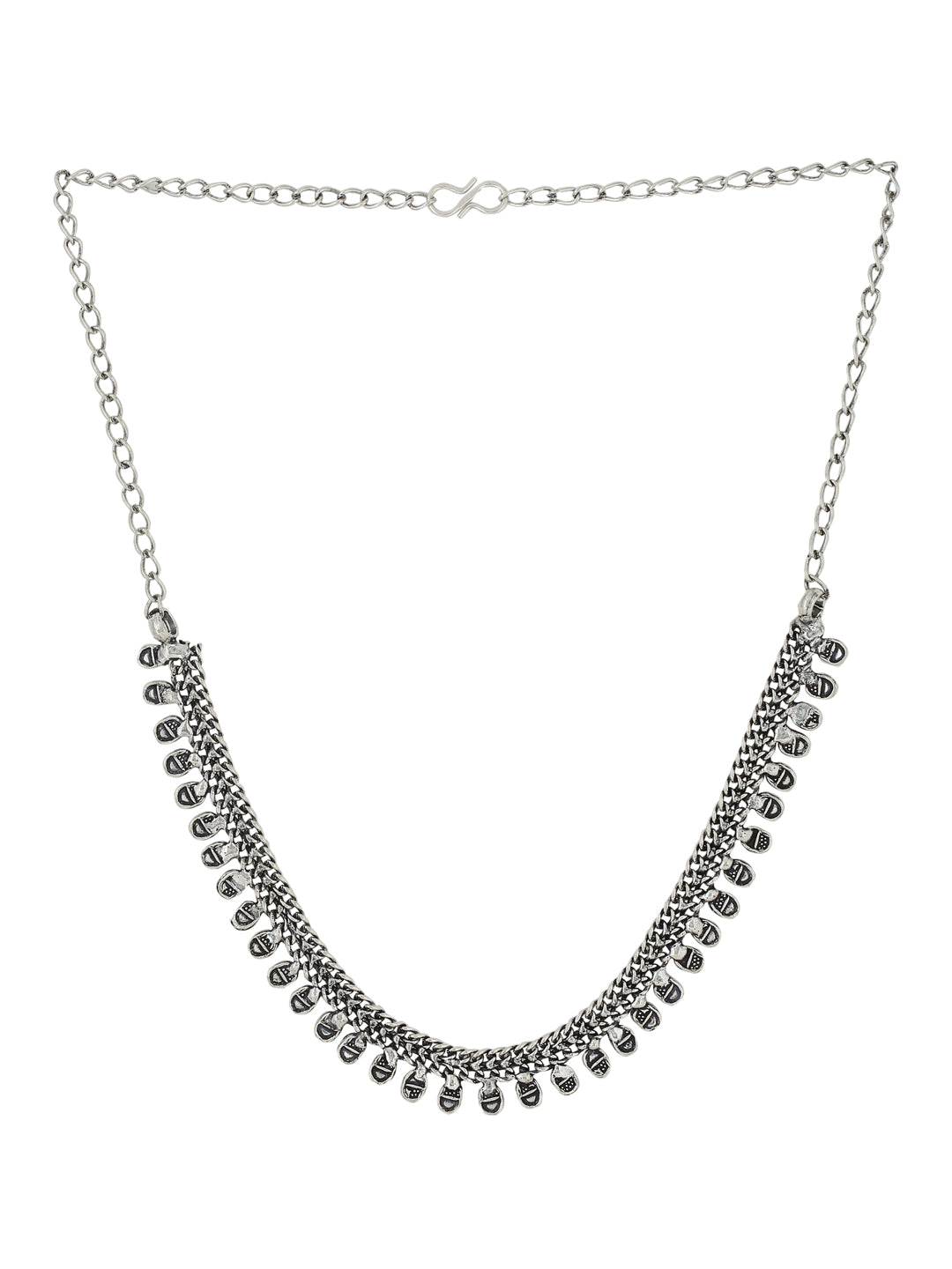 NVR Silver Toned Oxidised Beaded Necklace