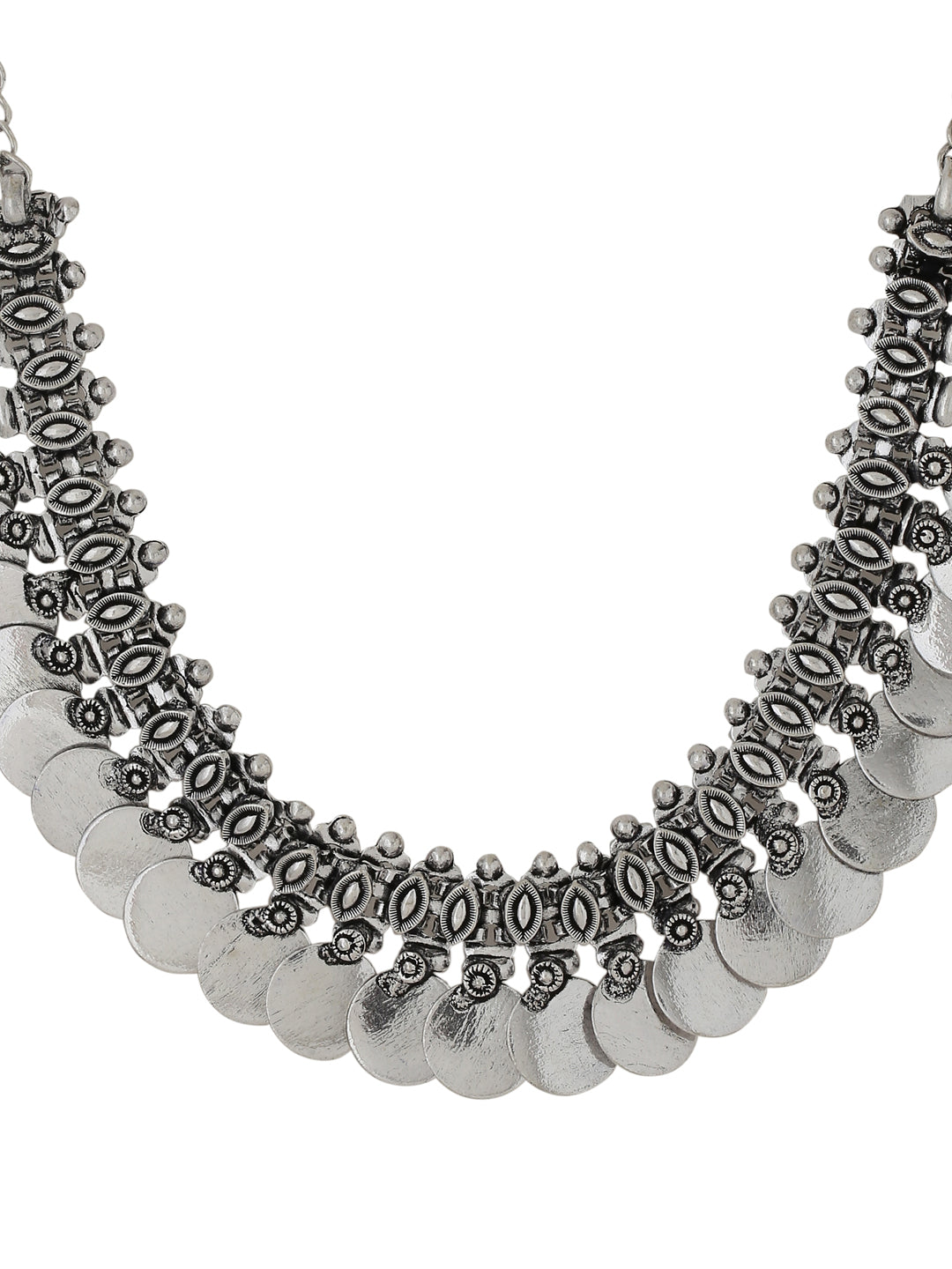 NVR Silver Toned Oxidised Beaded Necklace