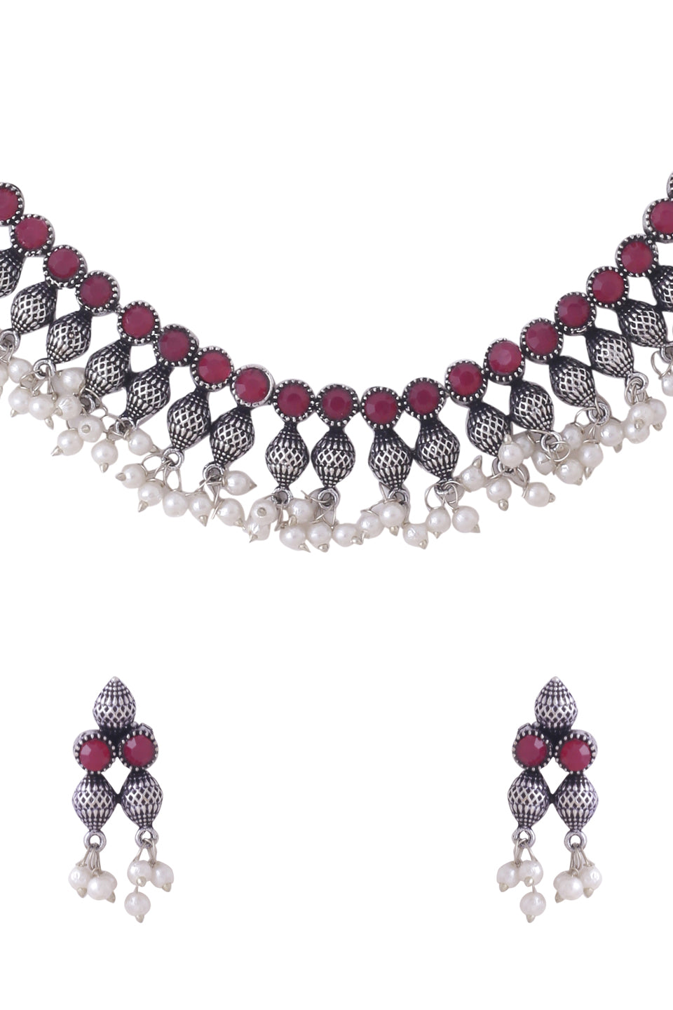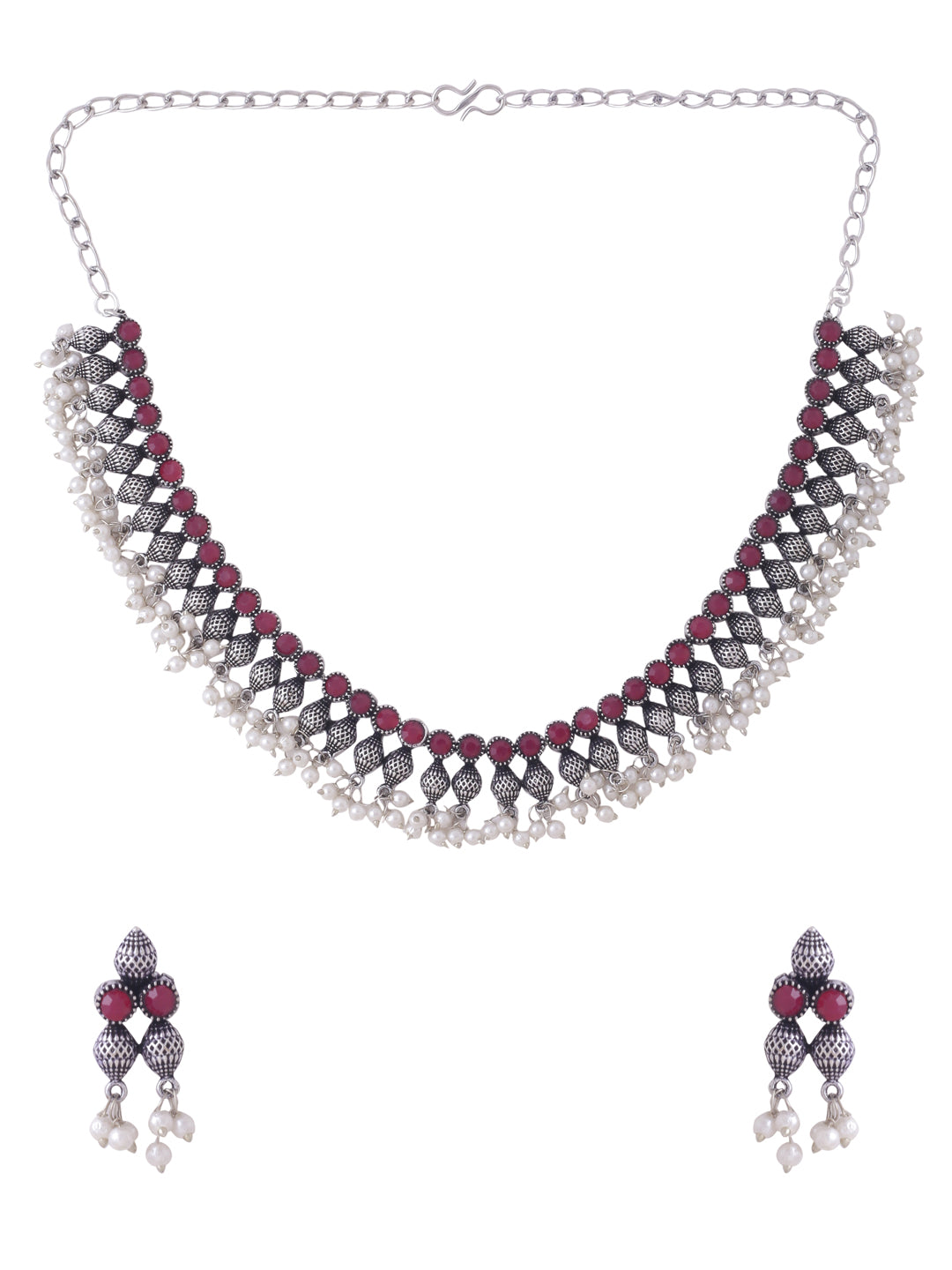 NVR Stone Studded Oxidised Silver Jewellery Set