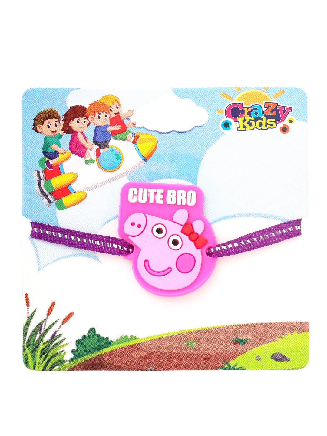 NVR Stylish Pink Cartoon Character Kids Rakhi with Roli Chawal Chandan & Mishri