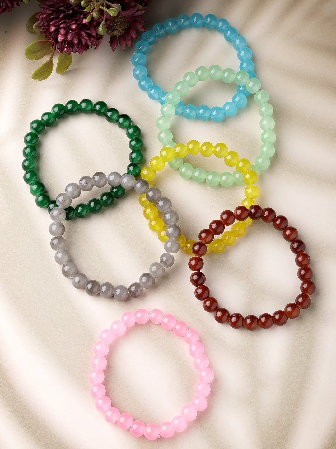 Set Of 7 Artificial Beads Bracelet , secured with slip-on closure