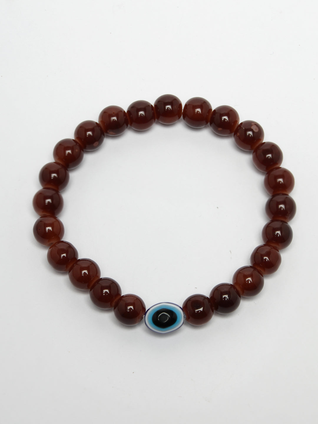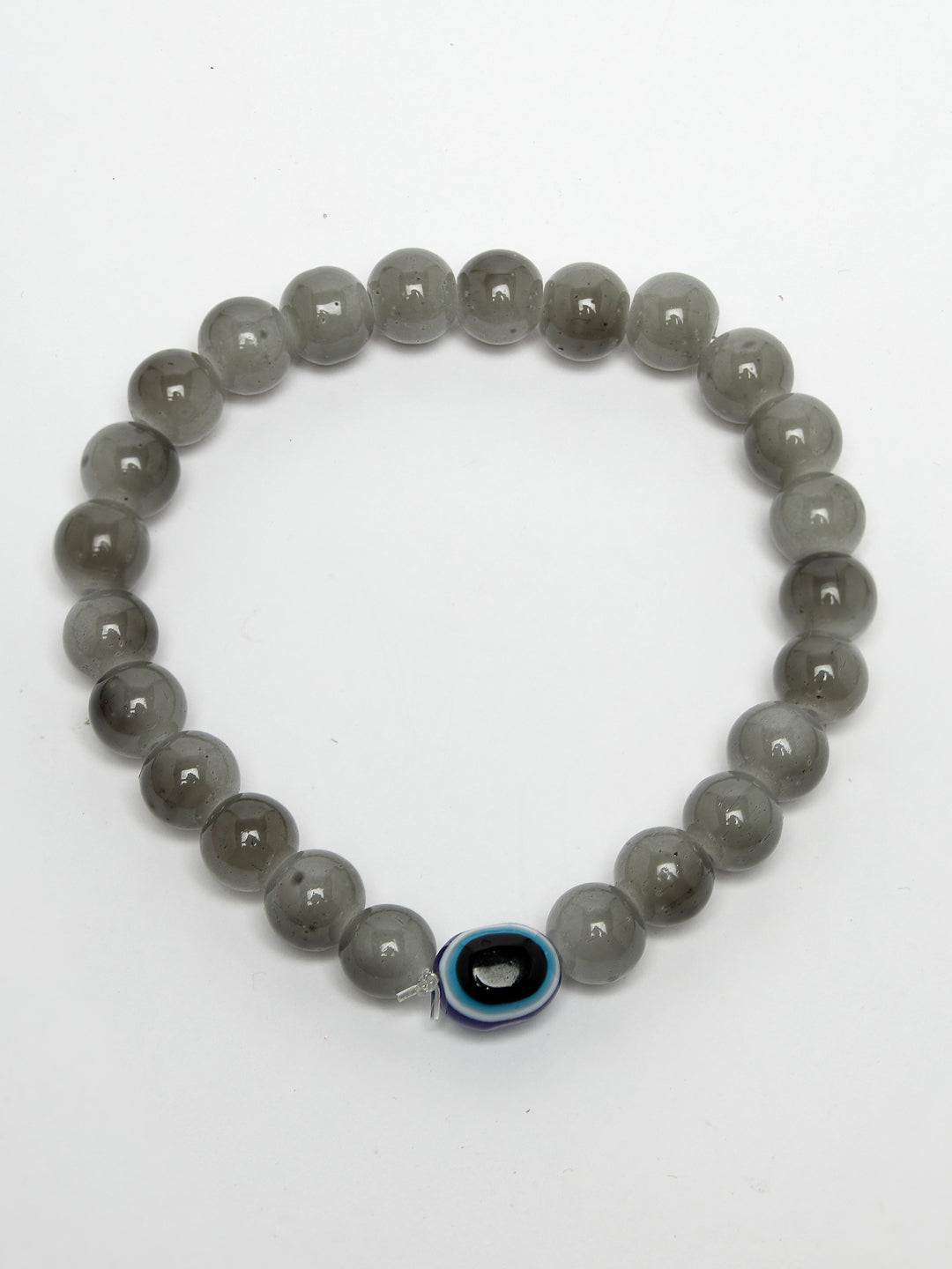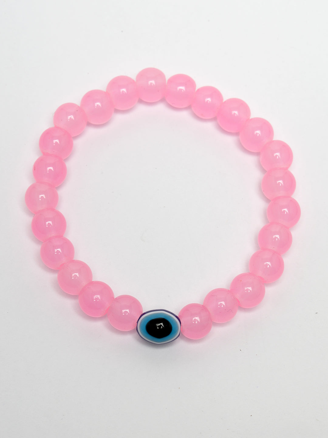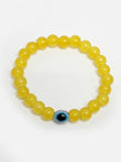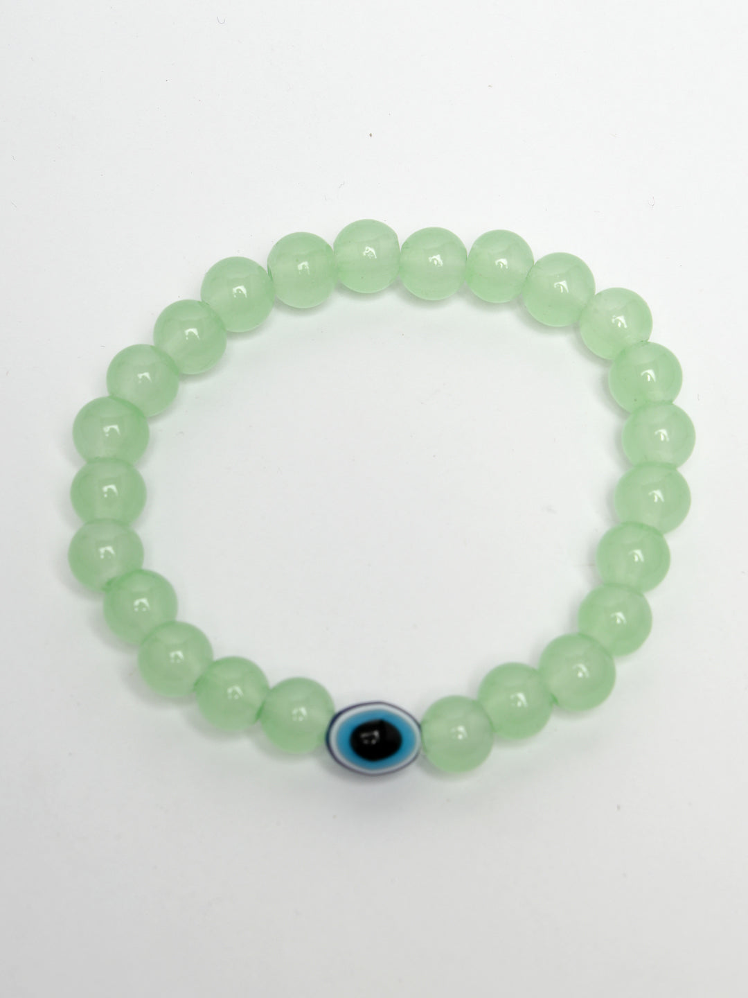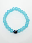 Set Of 7 Crystals Beaded Evil Eye Elasticated Bracelet , secured with slip-on closure