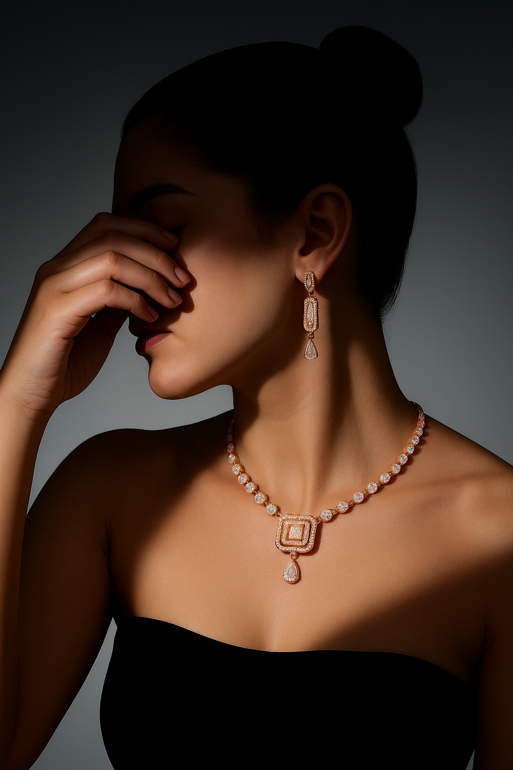 Gold-Plated American Diamond Studded Handcrafted Jewellery Set