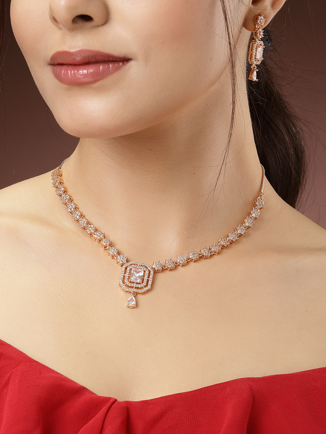NVR Women Gold-Plated American Diamond Studded Handcrafted Jewellery Set