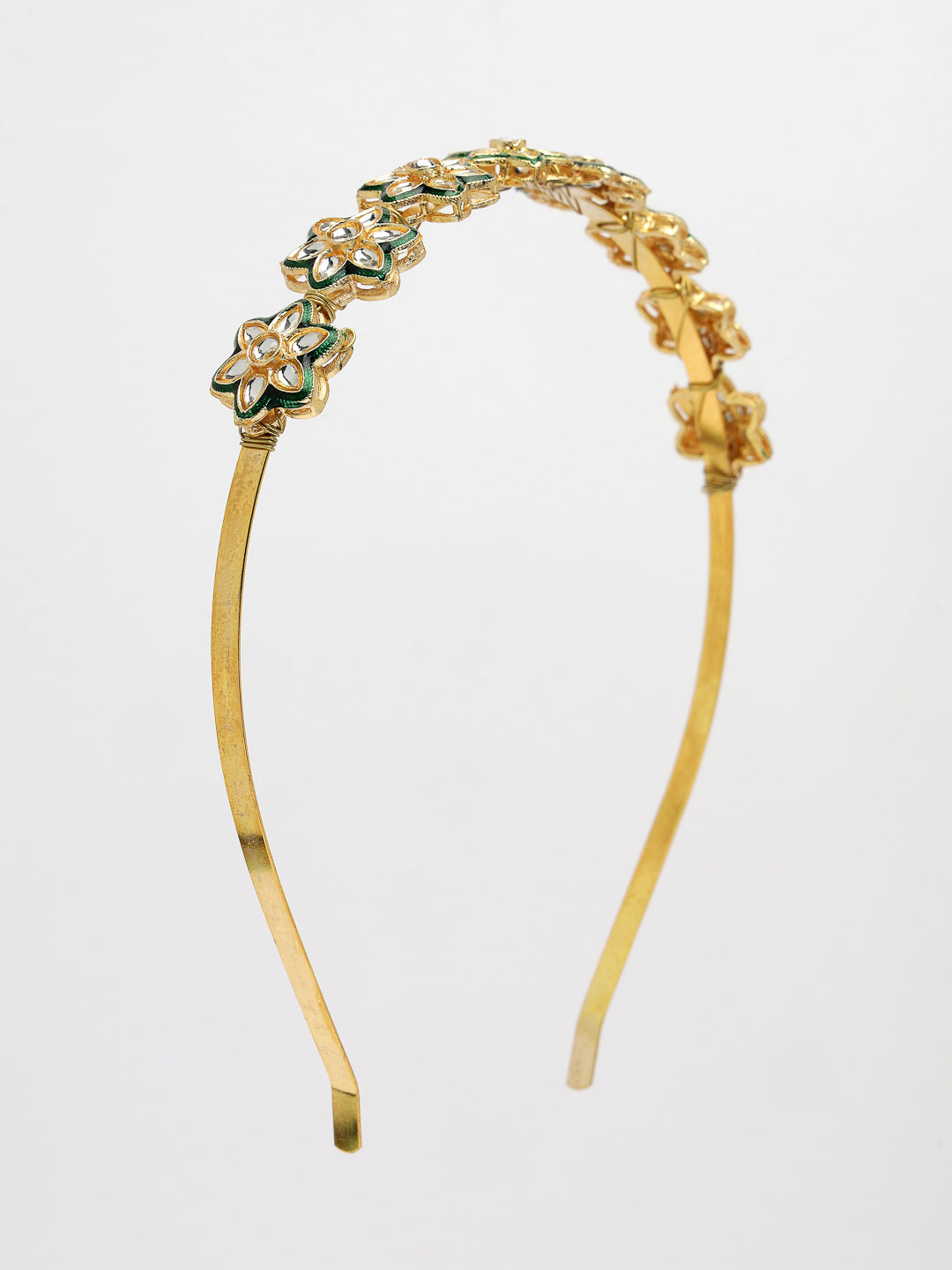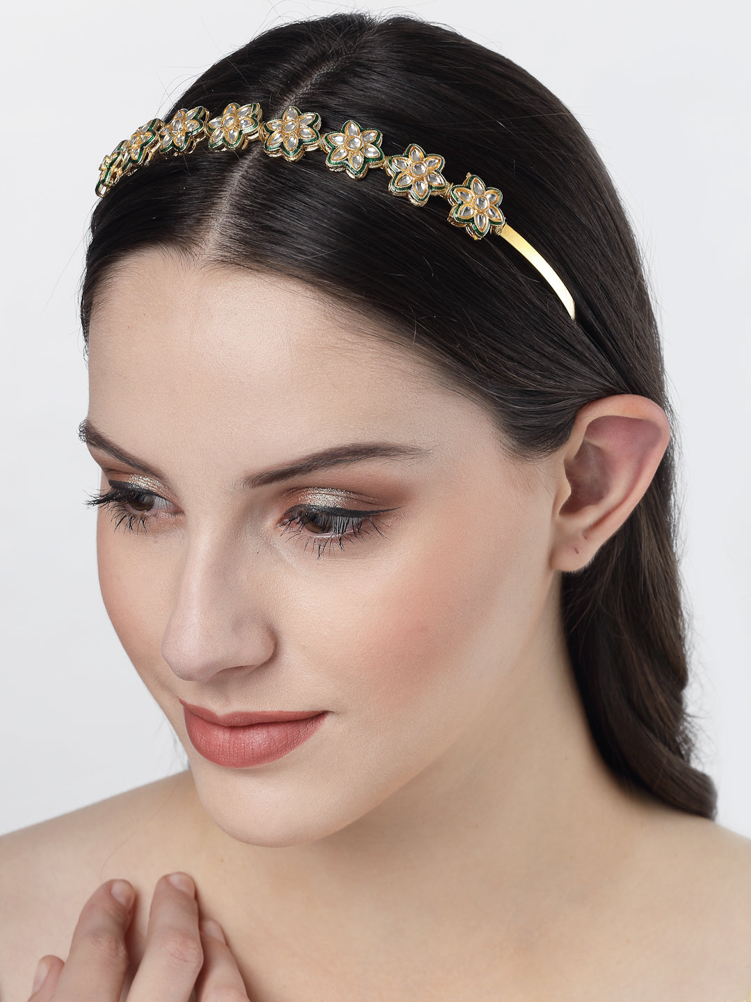 NVR Women Gold-Plated Kundan Embellished Hairband
