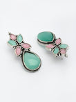 NVR Women Green & Pink Artificial Stones Silver Plated Drop Earrings