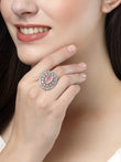 NVR Women Pink & Silver CZ-Studded Handcrafted Adjustable Finger Ring