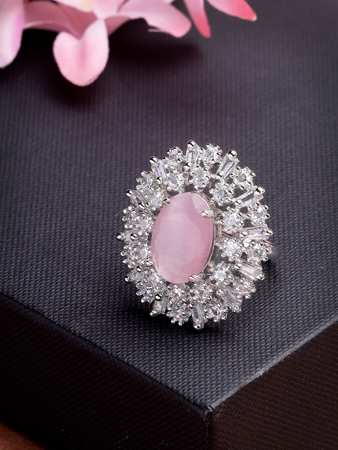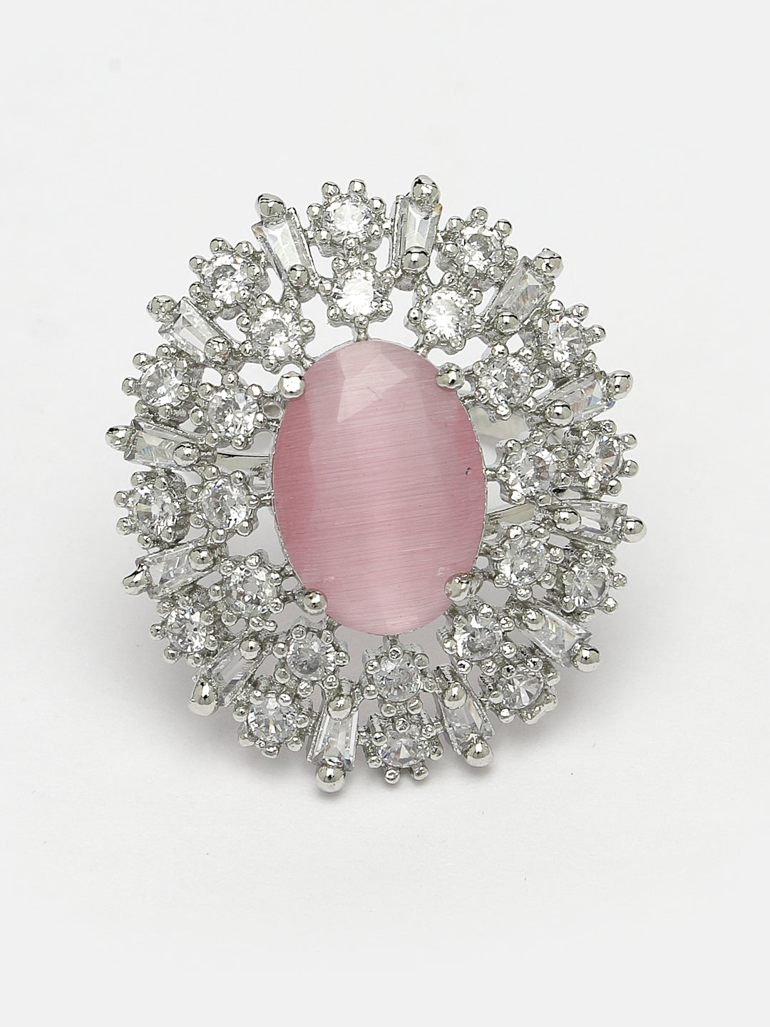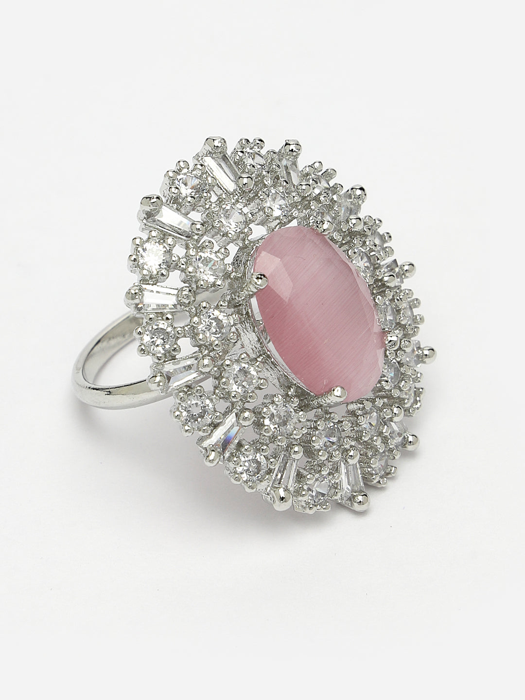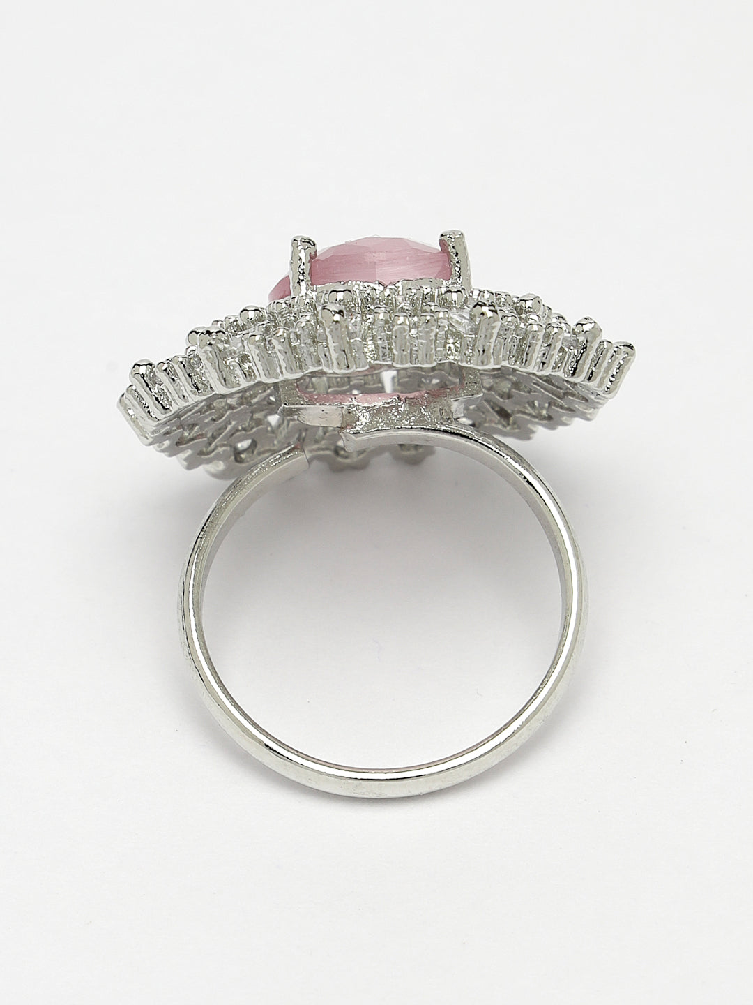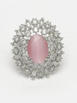 Pink & Silver CZ-Studded Handcrafted Adjustable Finger Ring