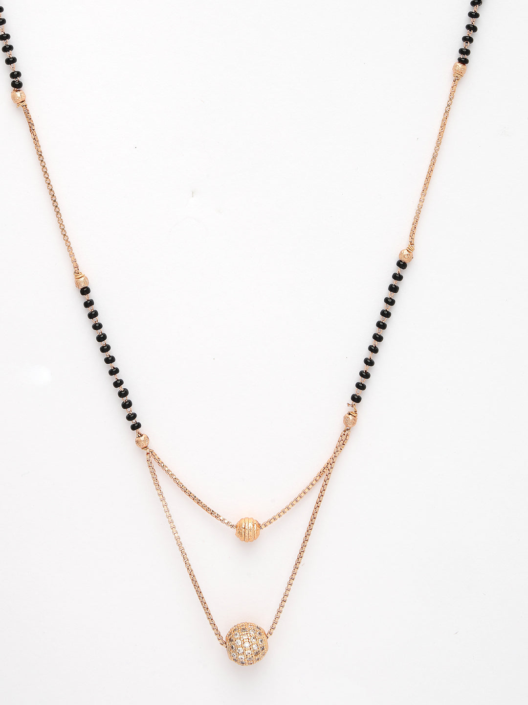 Rose Gold CZ Stone-Studded & Beaded Layered Mangalsutra