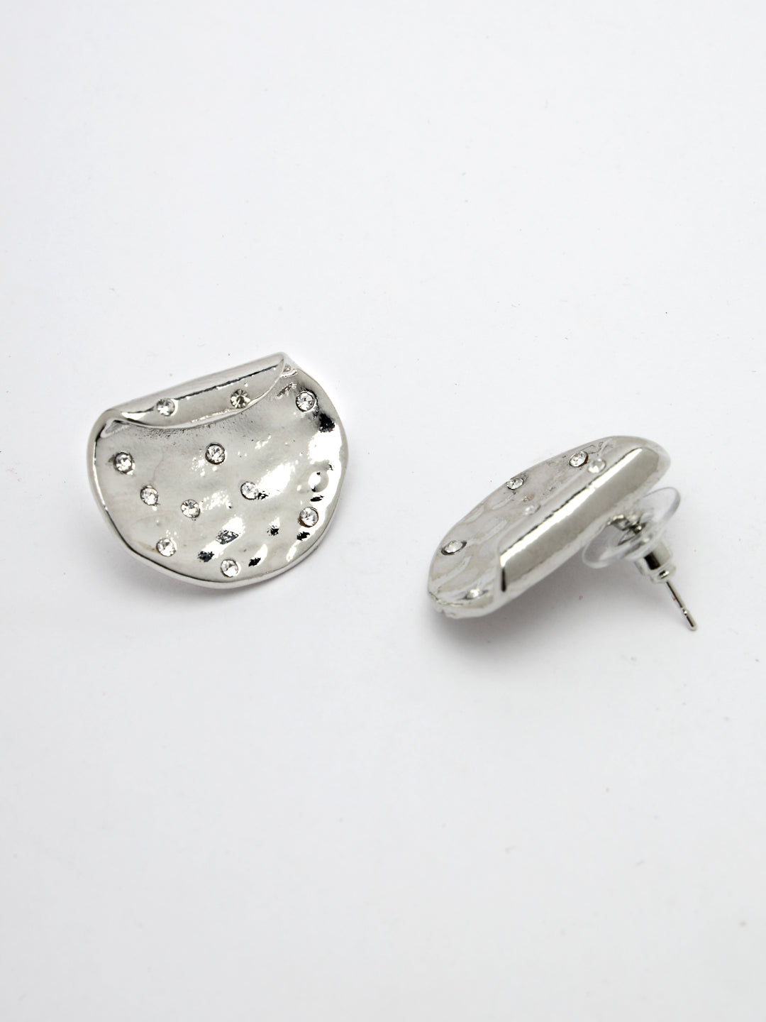 Set of 2 Gold & Silver Brass-Plated Artificial Stones Studded Studs Earring