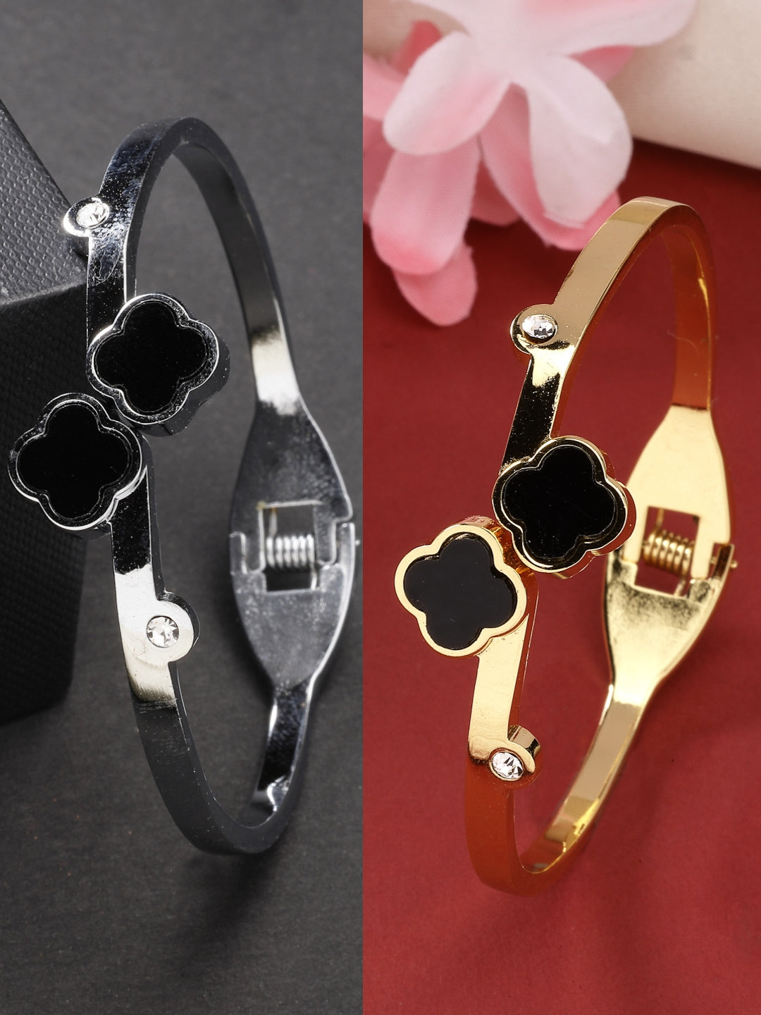 NVR Women Set of 2 Gold & Silver Cuff Bracelet