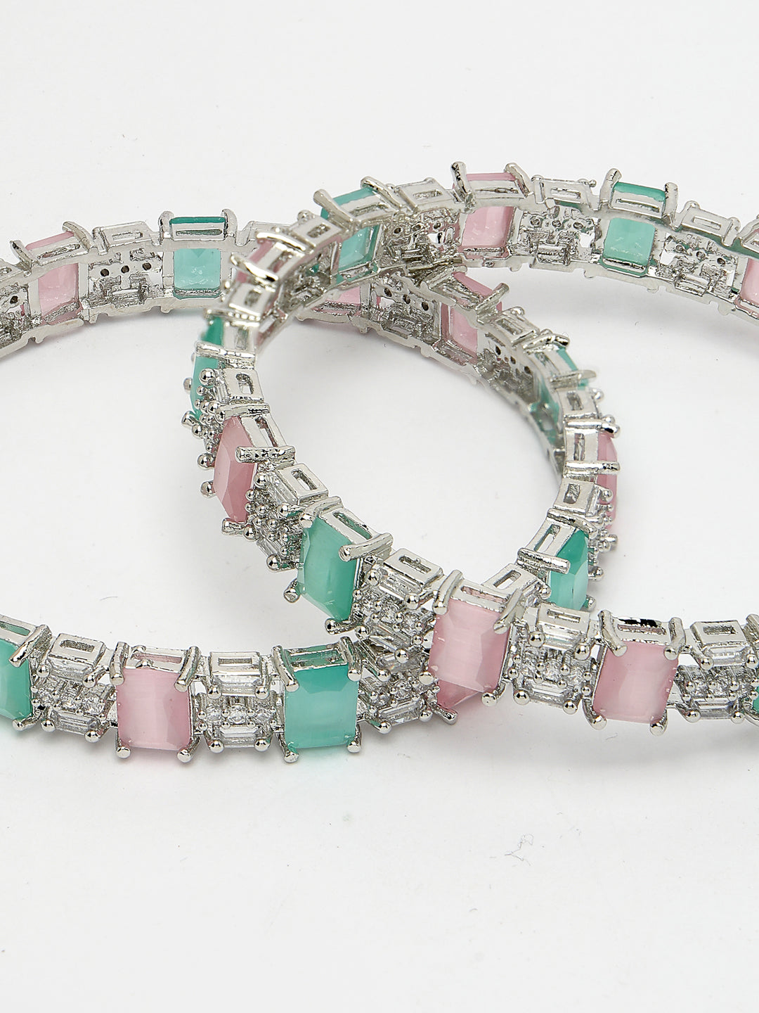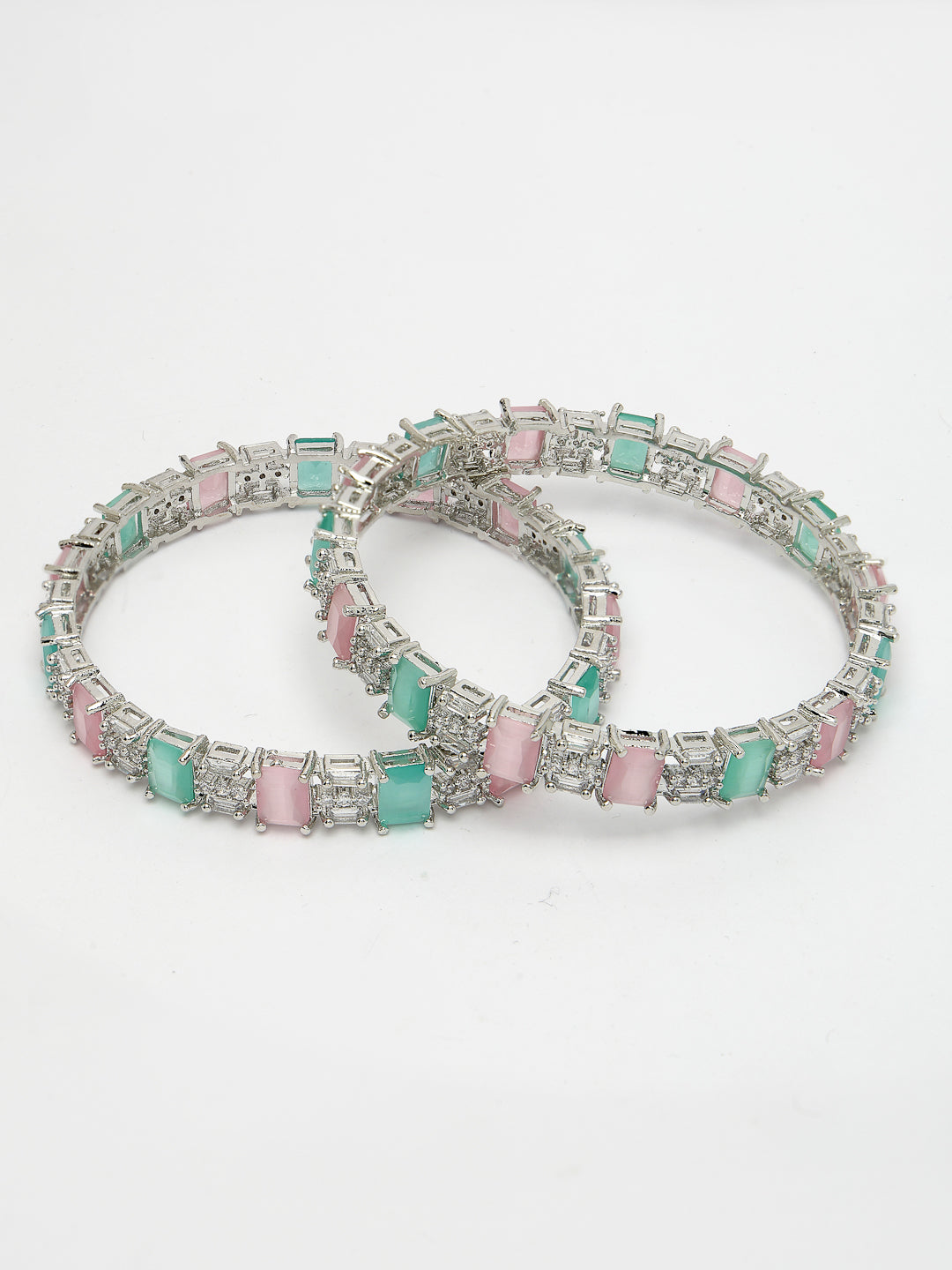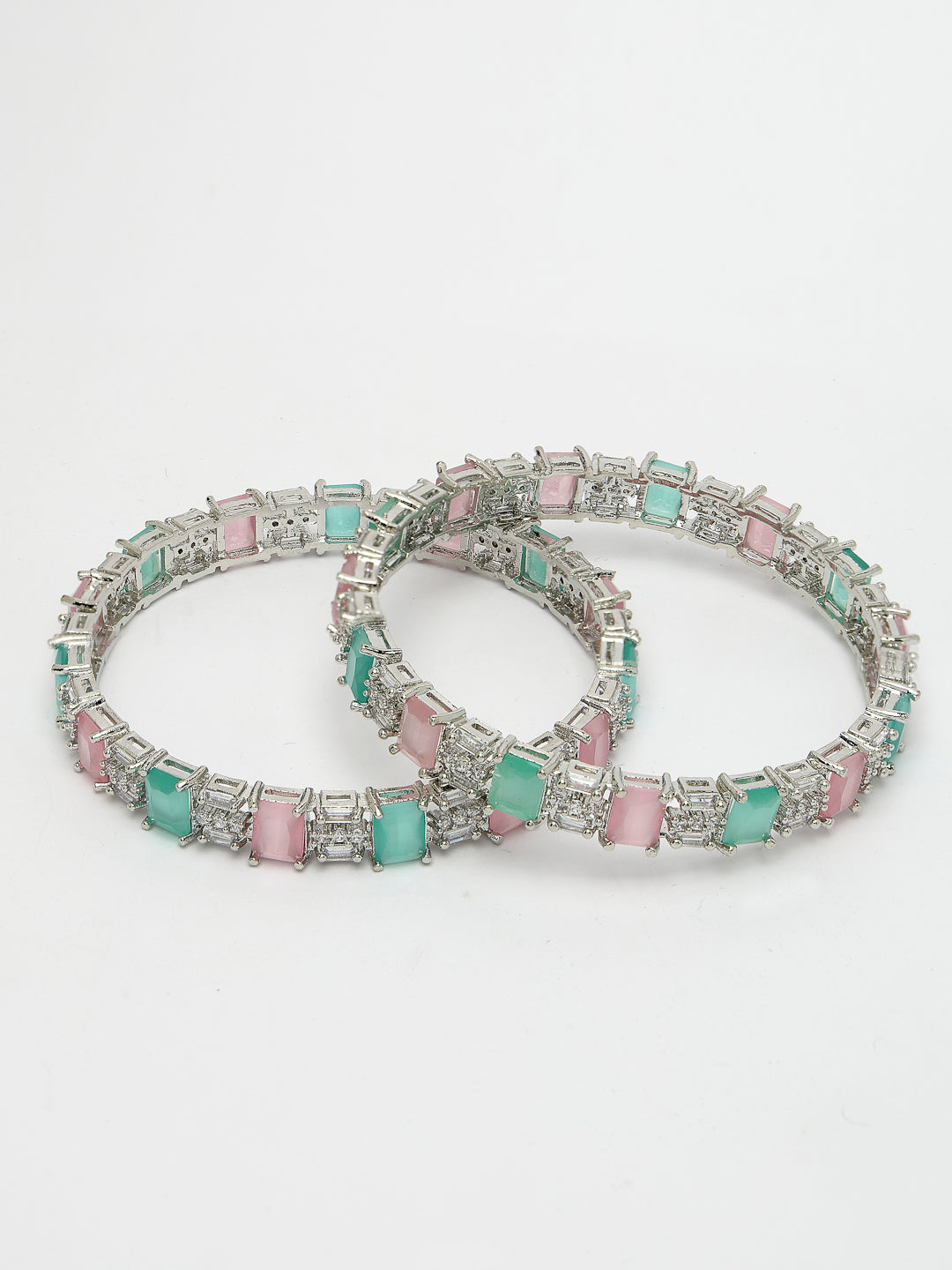 Set of 2 Multi-Coloured CZ Stone-Studded Handcrafted Bangles