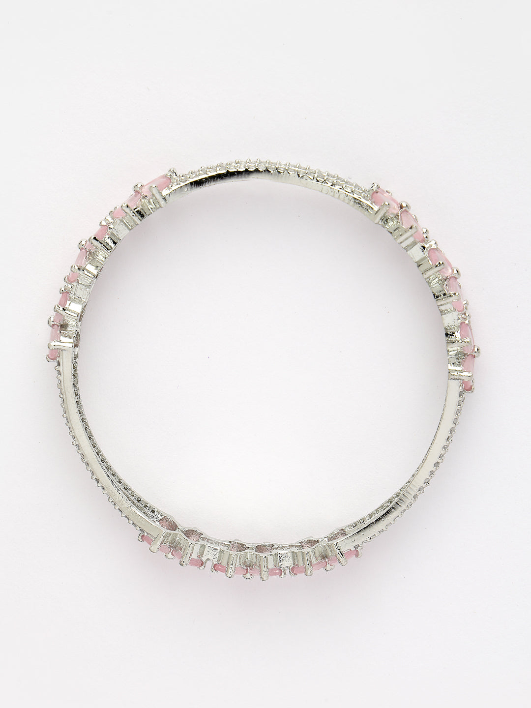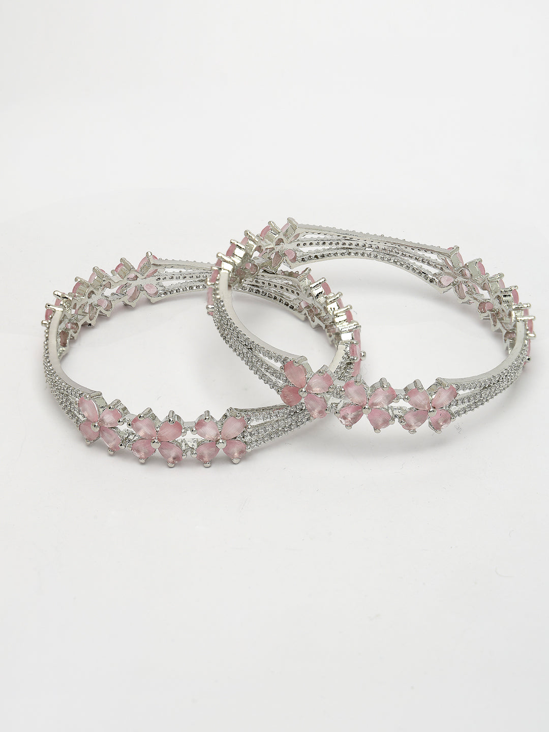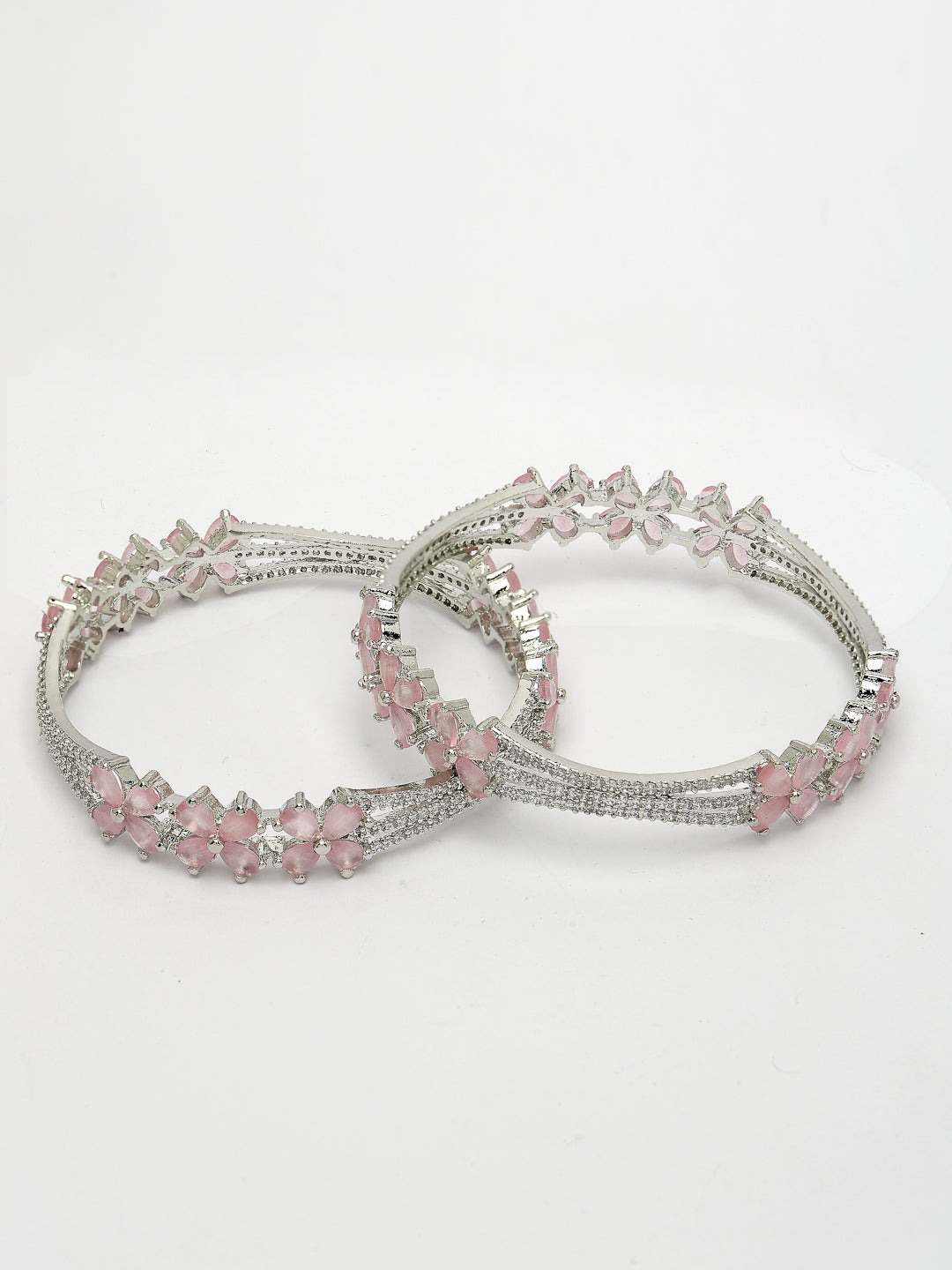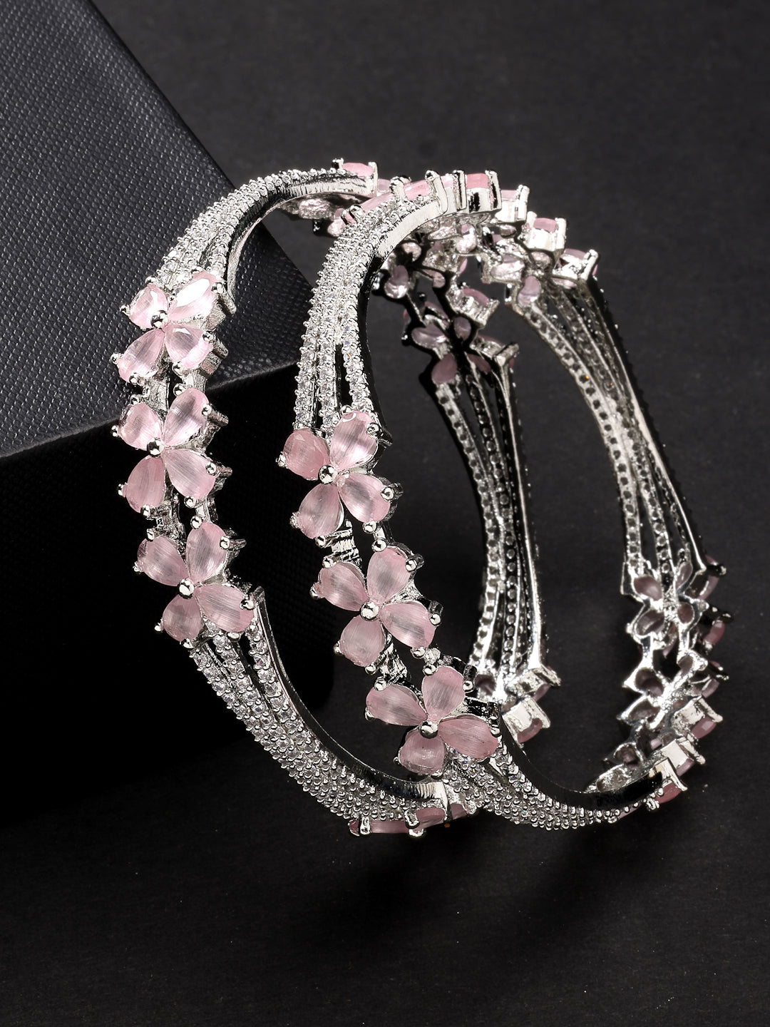 NVR Women Set of 2 Silver-Plated American Diamond Handcrafted Bangles