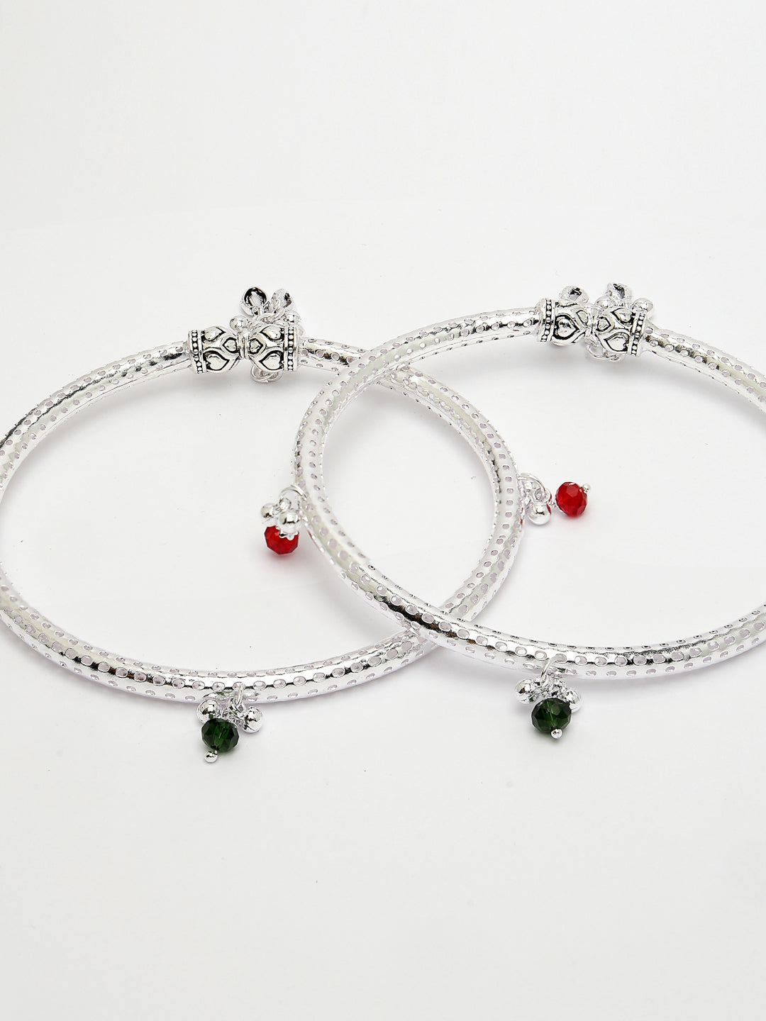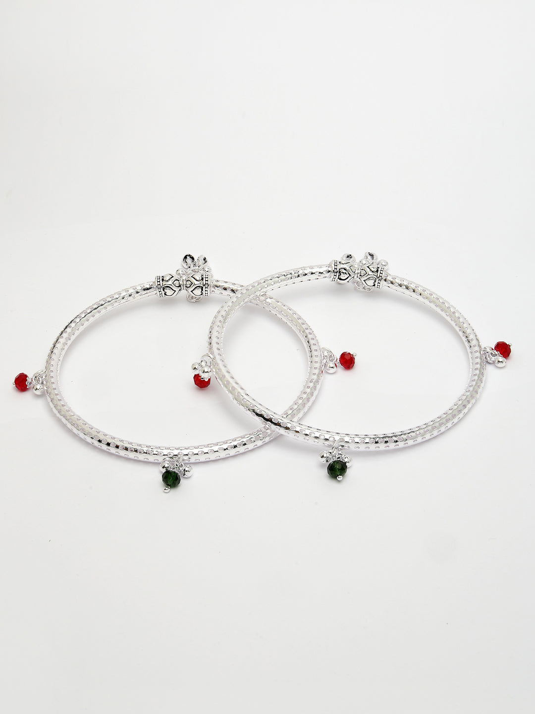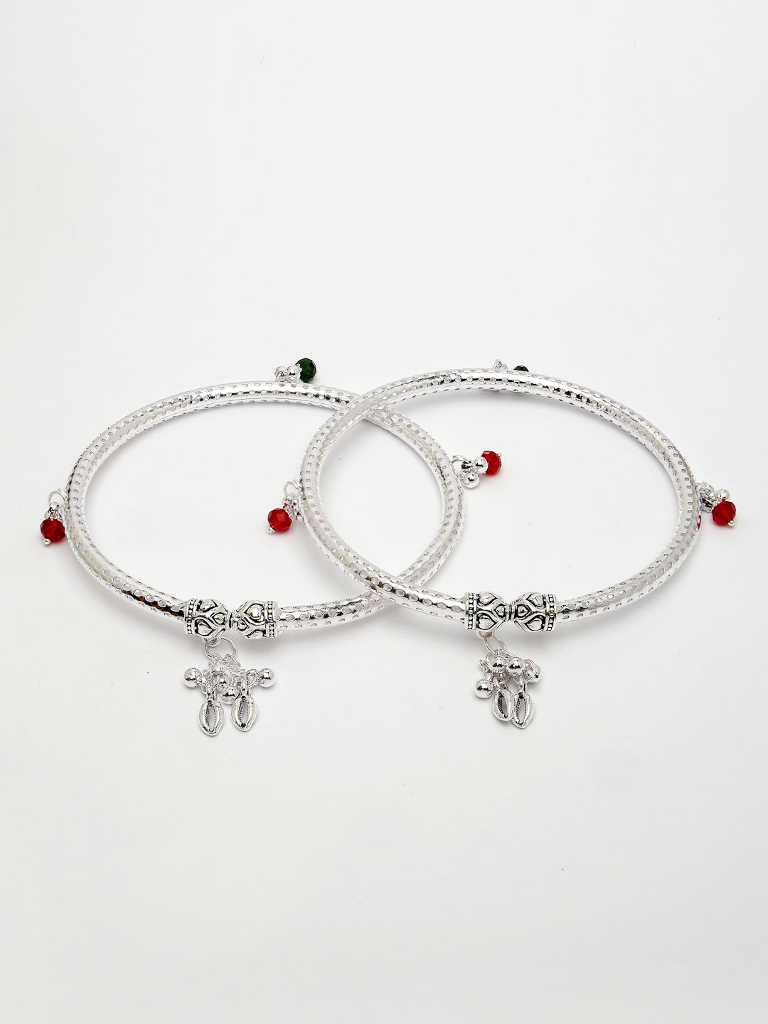 NVR Women Set of 2 Silver-Plated Kada Anklets