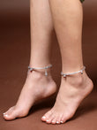 Style Note: The NVR Women Set of 2 Silver-Plated Kada Anklets offers a blend of simplicity and elegance. Each anklet in this set is crafted from silver-plated metal, designed in a traditional Kada style. These anklets are versatile and can be worn comfortably on various occasions, adding a touch of charm to both casual and festive attire. Their understated yet classic design makes them a timeless addition to your jewelry collection, perfect for those who appreciate subtle sophistication in their accessories.