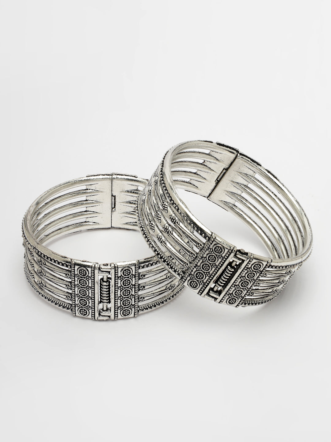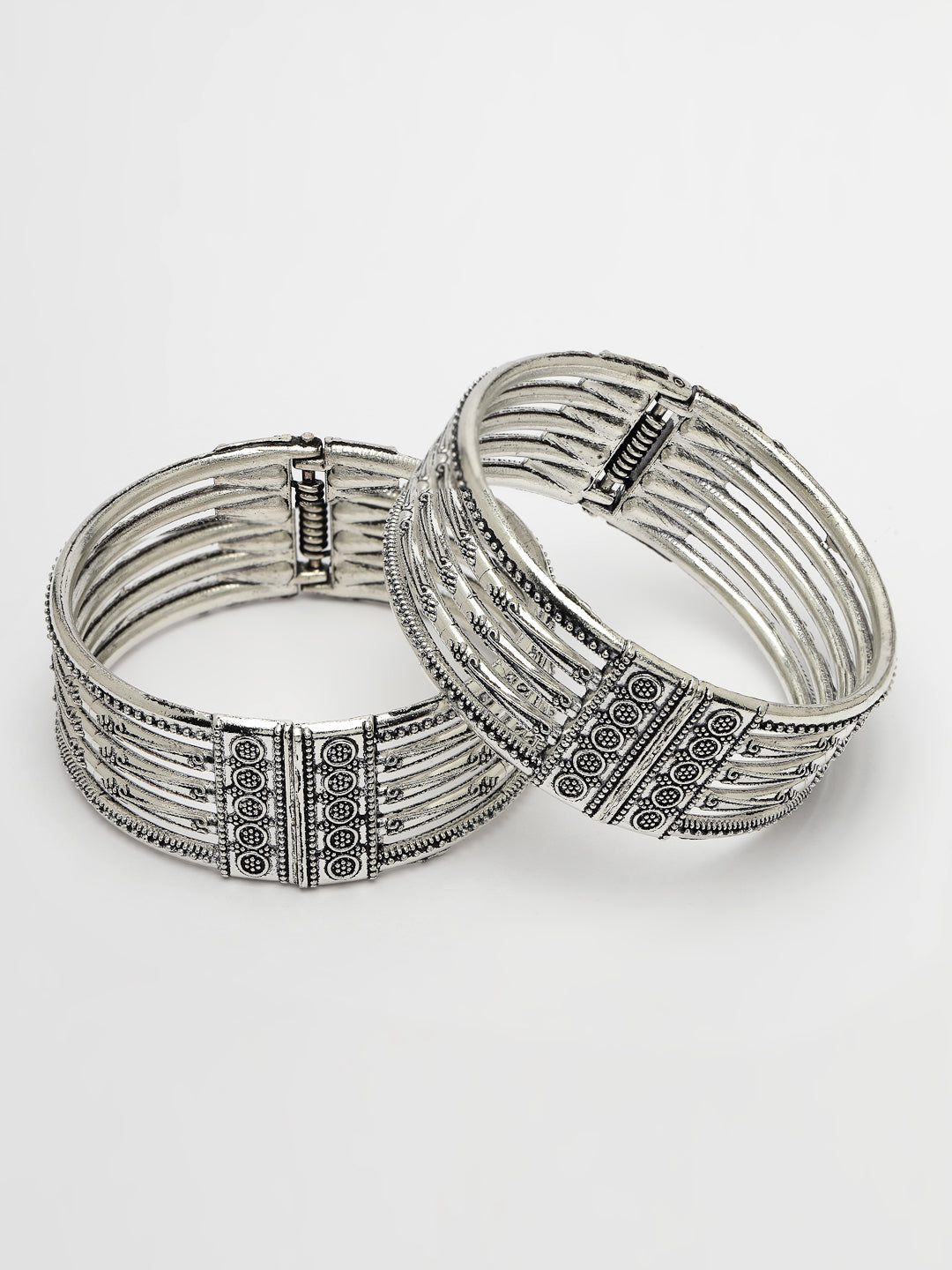 NVR Women Set of 2 Silver-Toned German Silver Oxidised Kada Bangle