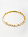 Style Note: Enhance your traditional look with the NVR Set of 4 Gold-Plated Pearls Handcrafted Traditional Bangles for Women. These bangles feature an intricate design, beautifully adorned with pearls that add a touch of elegance and sophistication. The gold-plated finish adds a warm, timeless glow, making them perfect for weddings, festivals, or cultural celebrations. Handcrafted with attention to detail, these bangles are lightweight yet durable, ensuring comfort throughout the day. Their classic appeal pairs effortlessly with sarees, lehengas, or any traditional attire, elevating your ensemble with a graceful, luxurious touch.