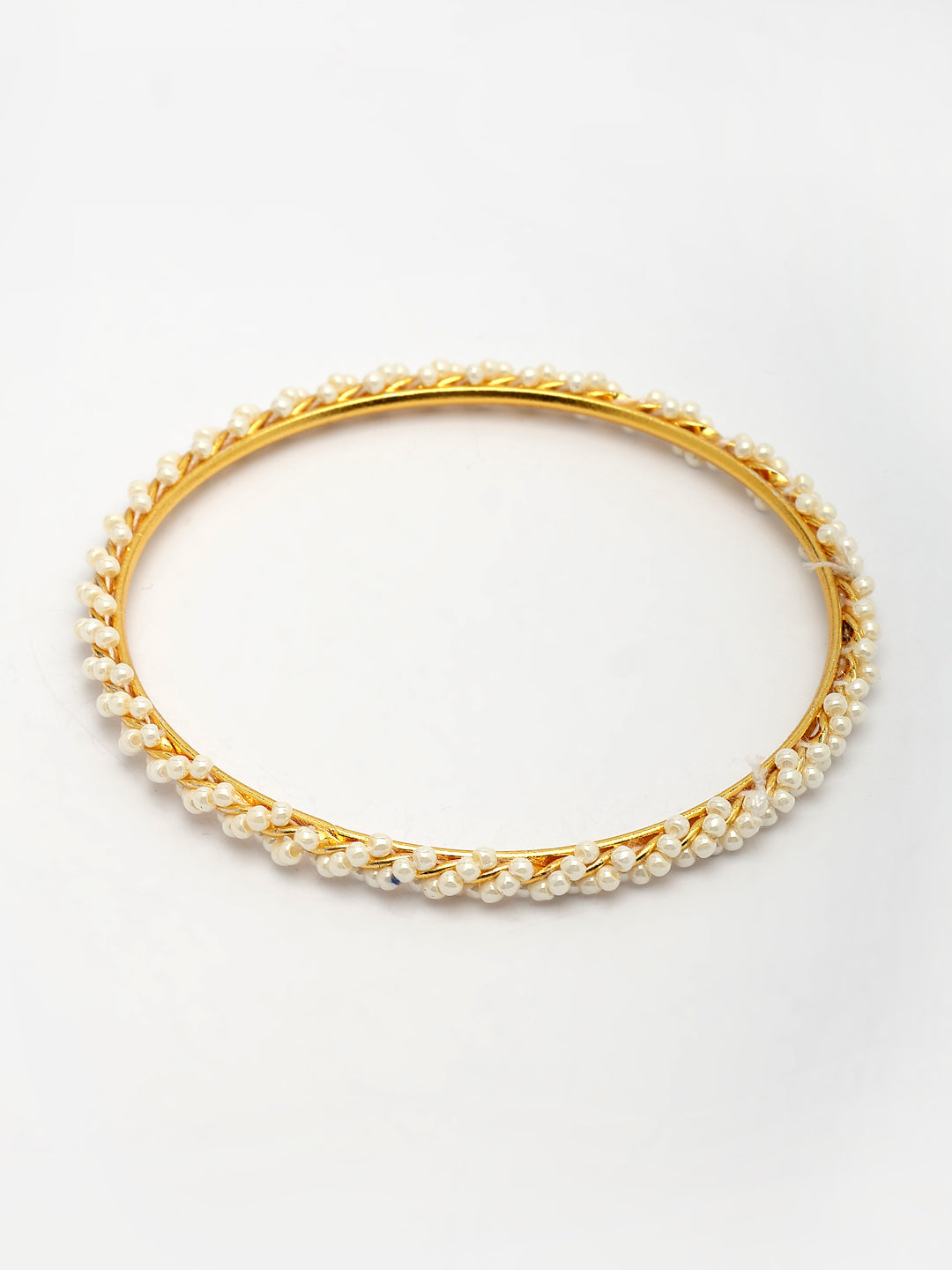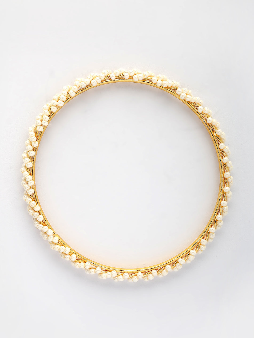 NVR Women Set of 4 Gold-Plated Pearls Handcrafted Traditional Bangles